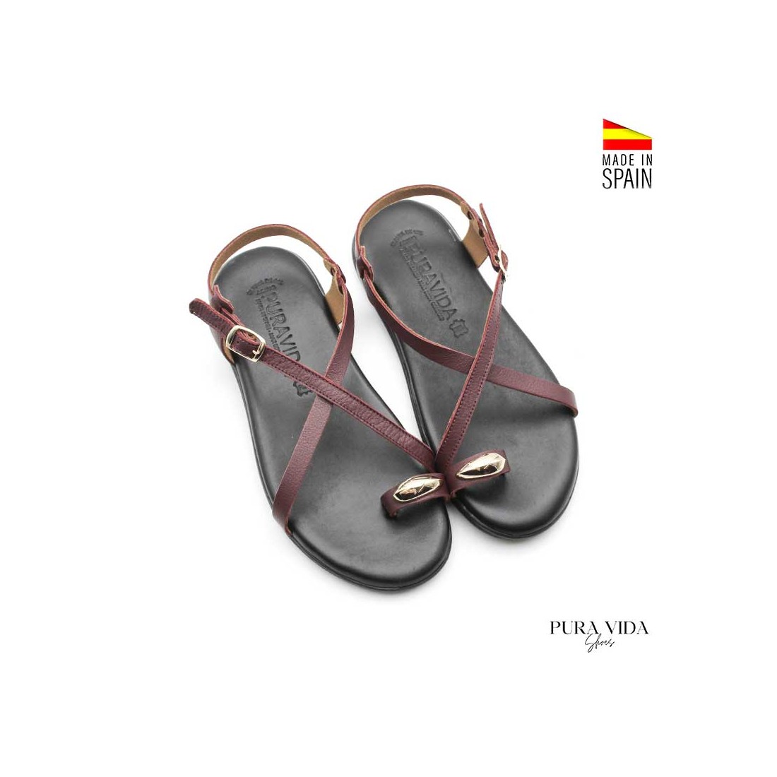Las Sandalias Anillo Dorado llegan pisando fuerte con un diseño en color burdeos que enamora a primera vista.