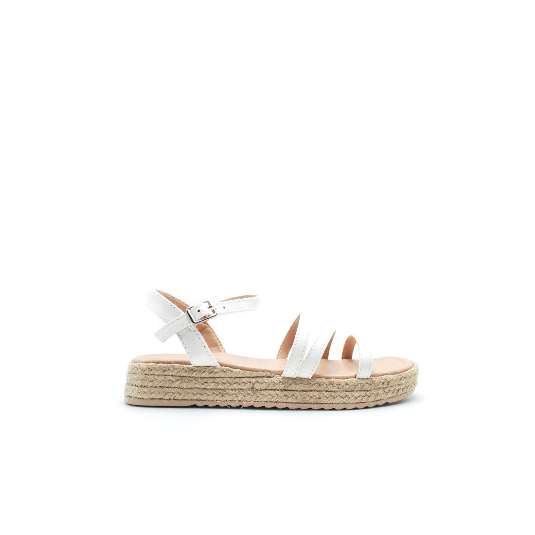 Incorporan varias tiras finas en la parte delantera que sujetan el pie con suavidad, junto con una pulsera trasera con cierre de hebilla que permite un ajuste seguro y cómodo. Su estructura favorece la estabilidad y facilita el uso durante todo el día.
