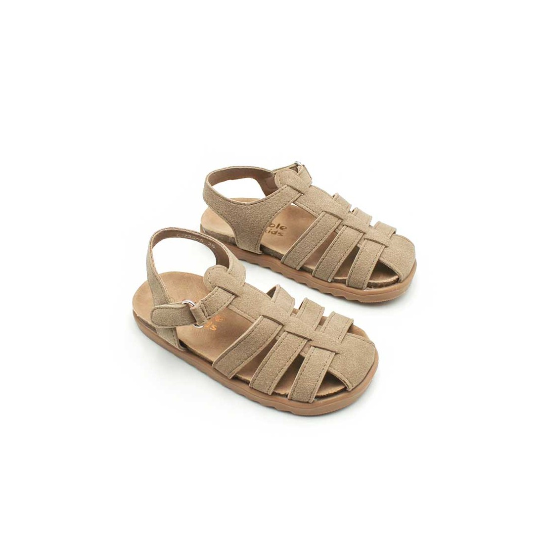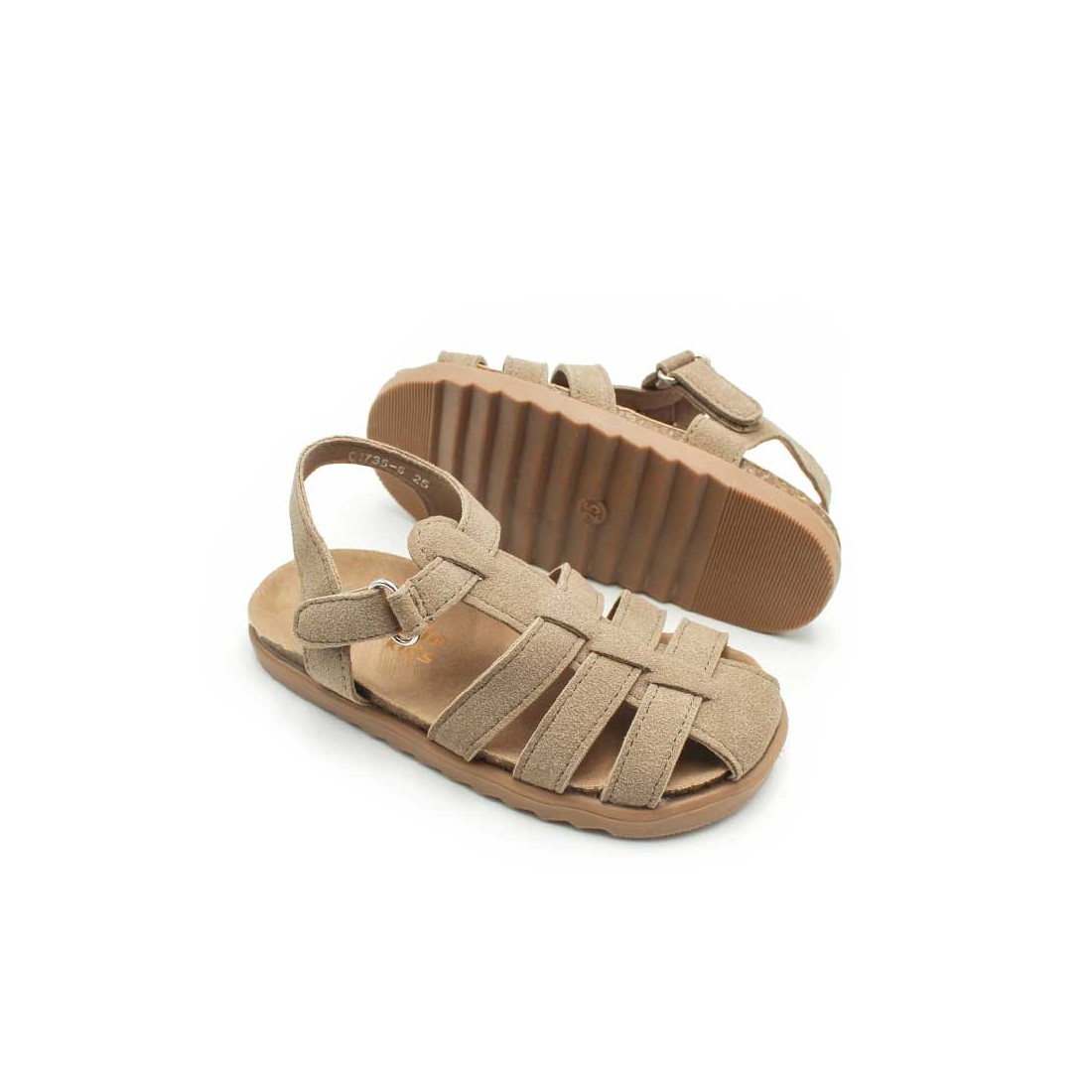 Estas sandalias beige para niño destacan por su diseño tipo cangrejera, un clásico renovado que aporta sujeción, frescura y estilo en cada paso. Su tonalidad neutra en beige taupe las convierte en un básico fácil de combinar con cualquier look veraniego, desde conjuntos más arreglados hasta outfits casuales.