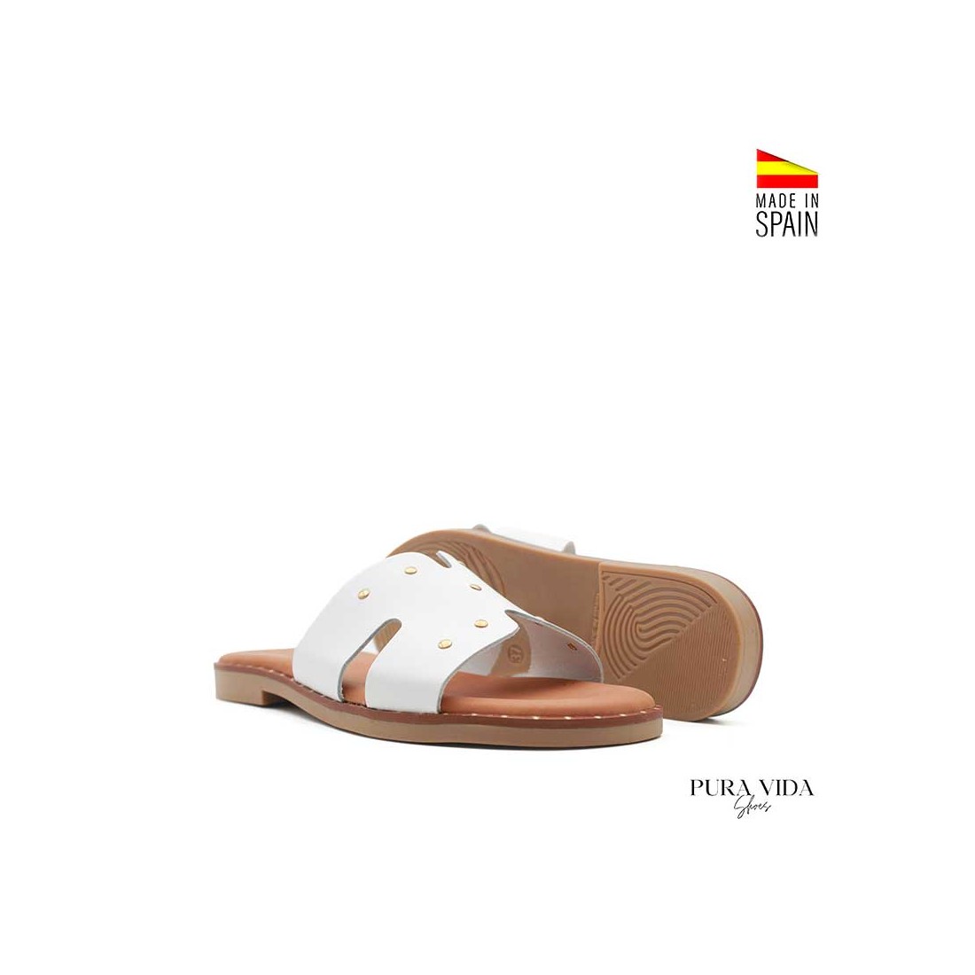 Estas sandalias blancas con tachas de Pura Vida combinan diseño actual y comodidad real para el día a día. Un modelo destalonado tipo chancla, fácil de calzar, pensado para las mujeres que buscan estilo sin renunciar al confort.