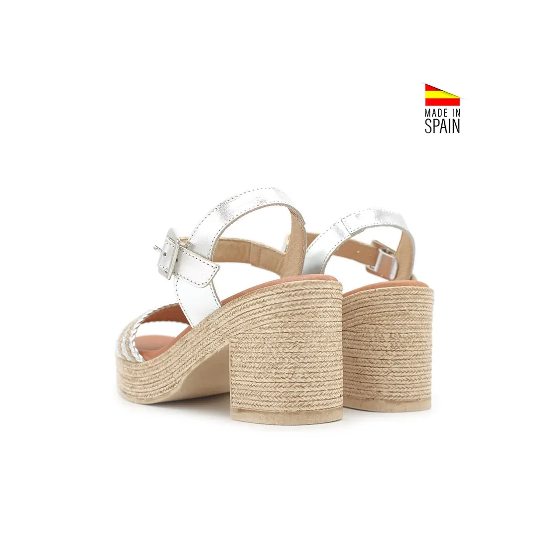 Para un ajuste seguro y personalizado, estas sandalias incluyen tiras trenzadas con cierre de hebilla plateada, permitiendo ajustes precisos y fáciles.