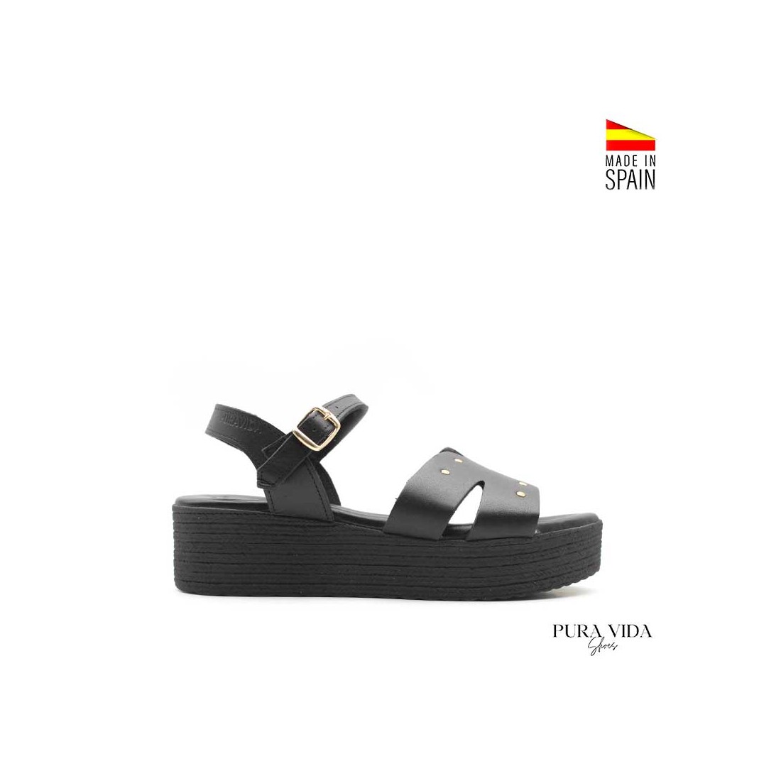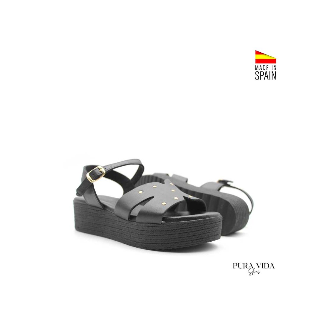 - Tipo: sandalia de plataforma con tachuelas