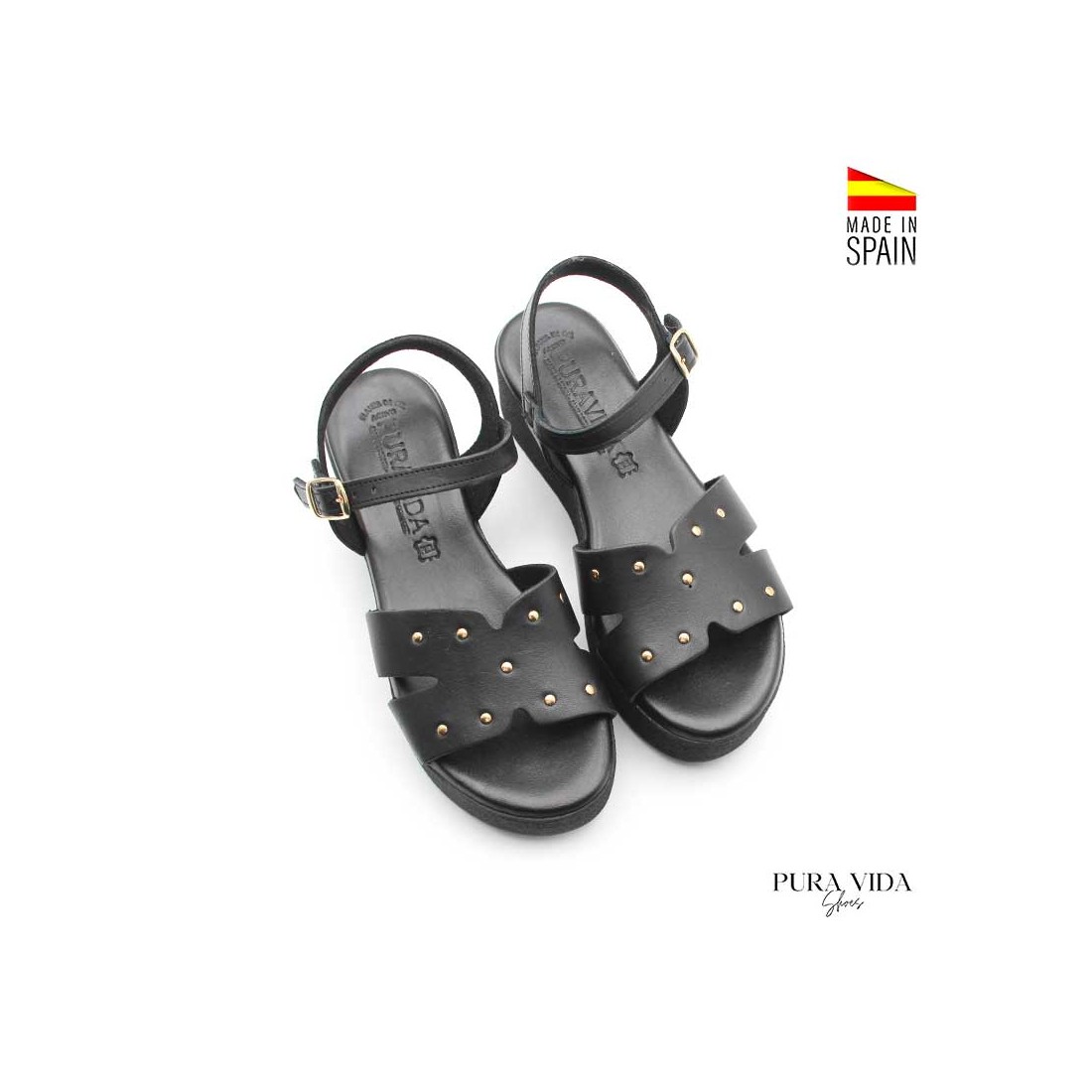 Confeccionadas en piel con forro interior en textil transpirable, fabricación española de la marca Pura Vida Shoes, cuidando cada detalle para garantizar durabilidad y comodidad.