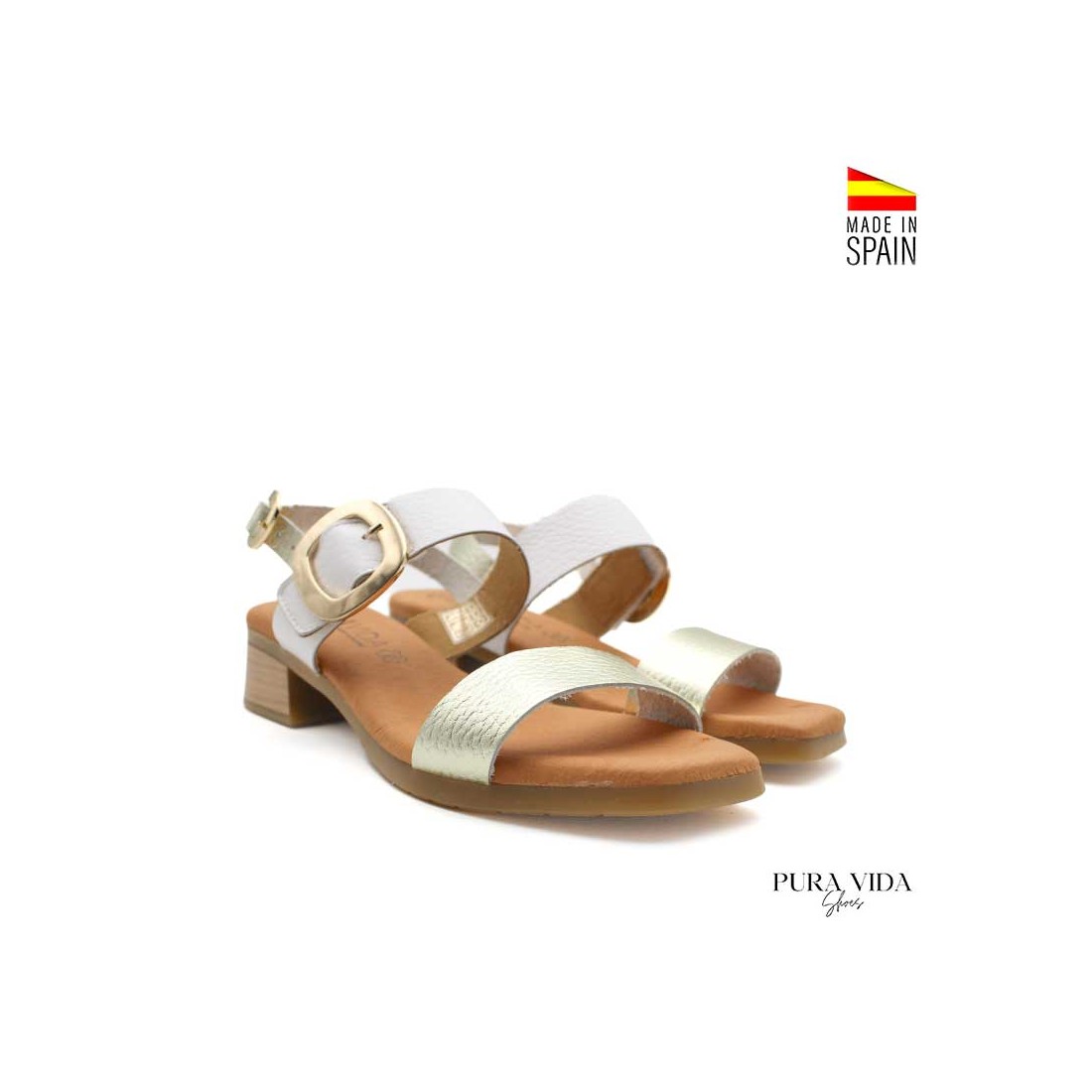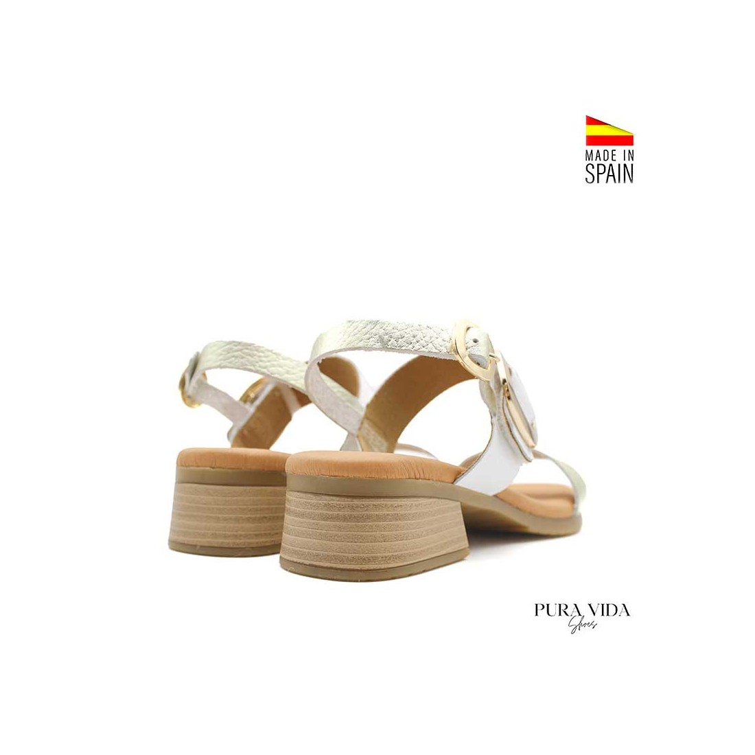 - Tipo: sandalia con tacón bajo