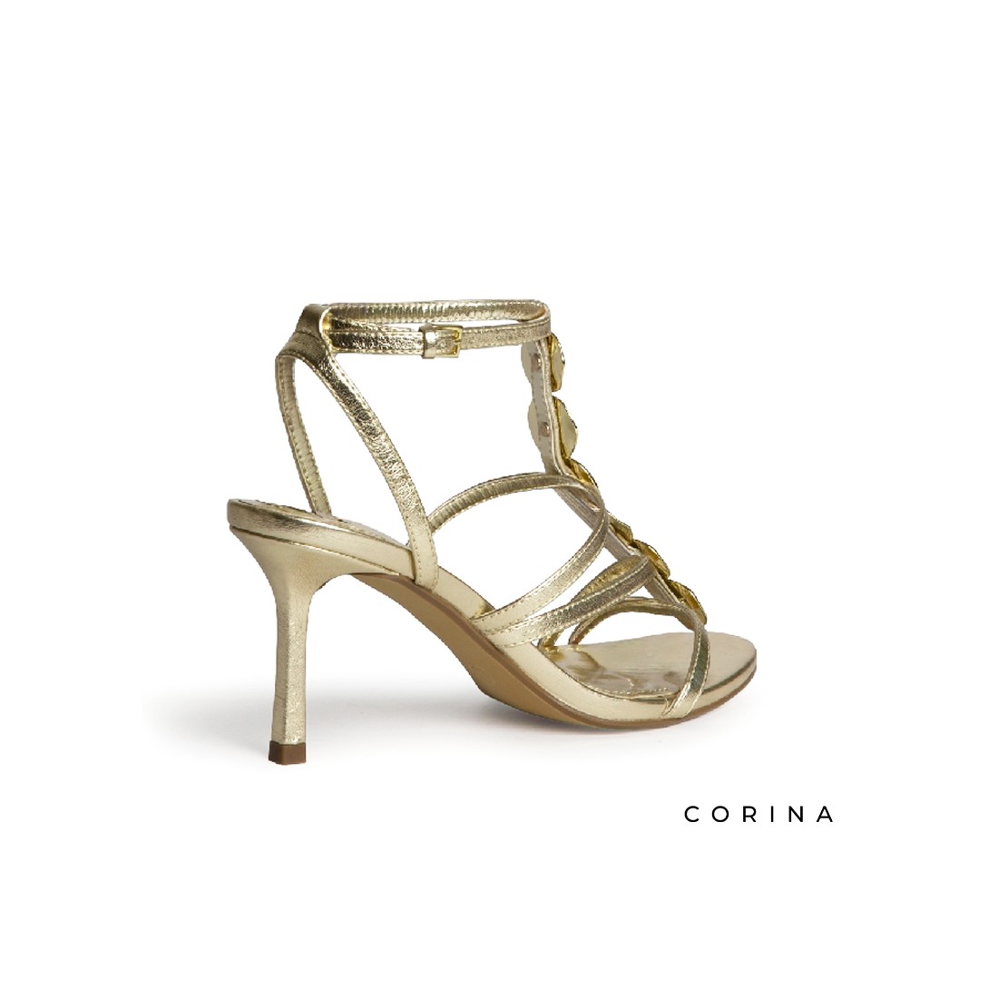 Las sandalias tacon fino doradas de Corina son la elección perfecta para elevar cualquier look de invitada, evento especial o noche de verano. Su diseño estilizado combina líneas delicadas con un acabado metalizado que aporta luz en cada paso.