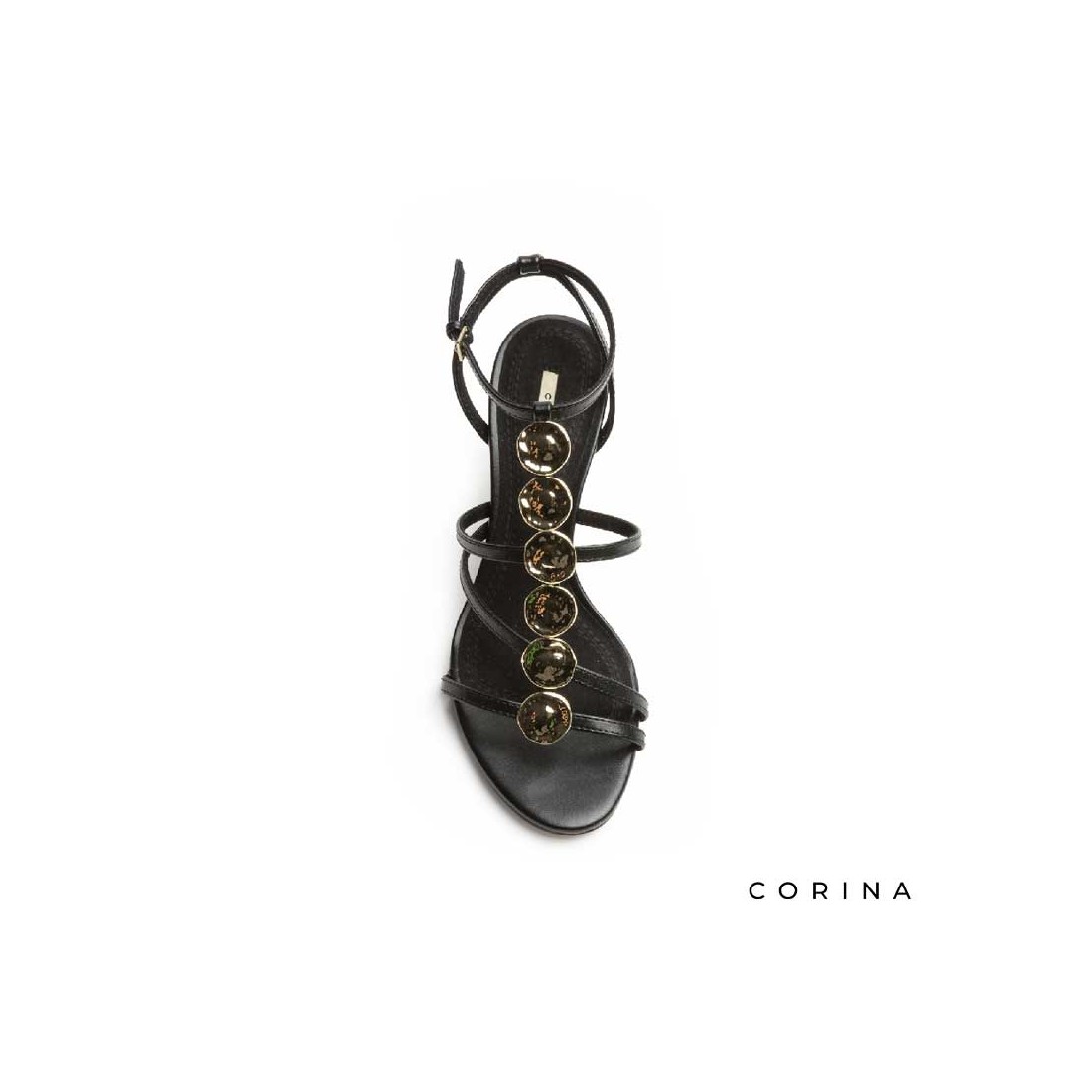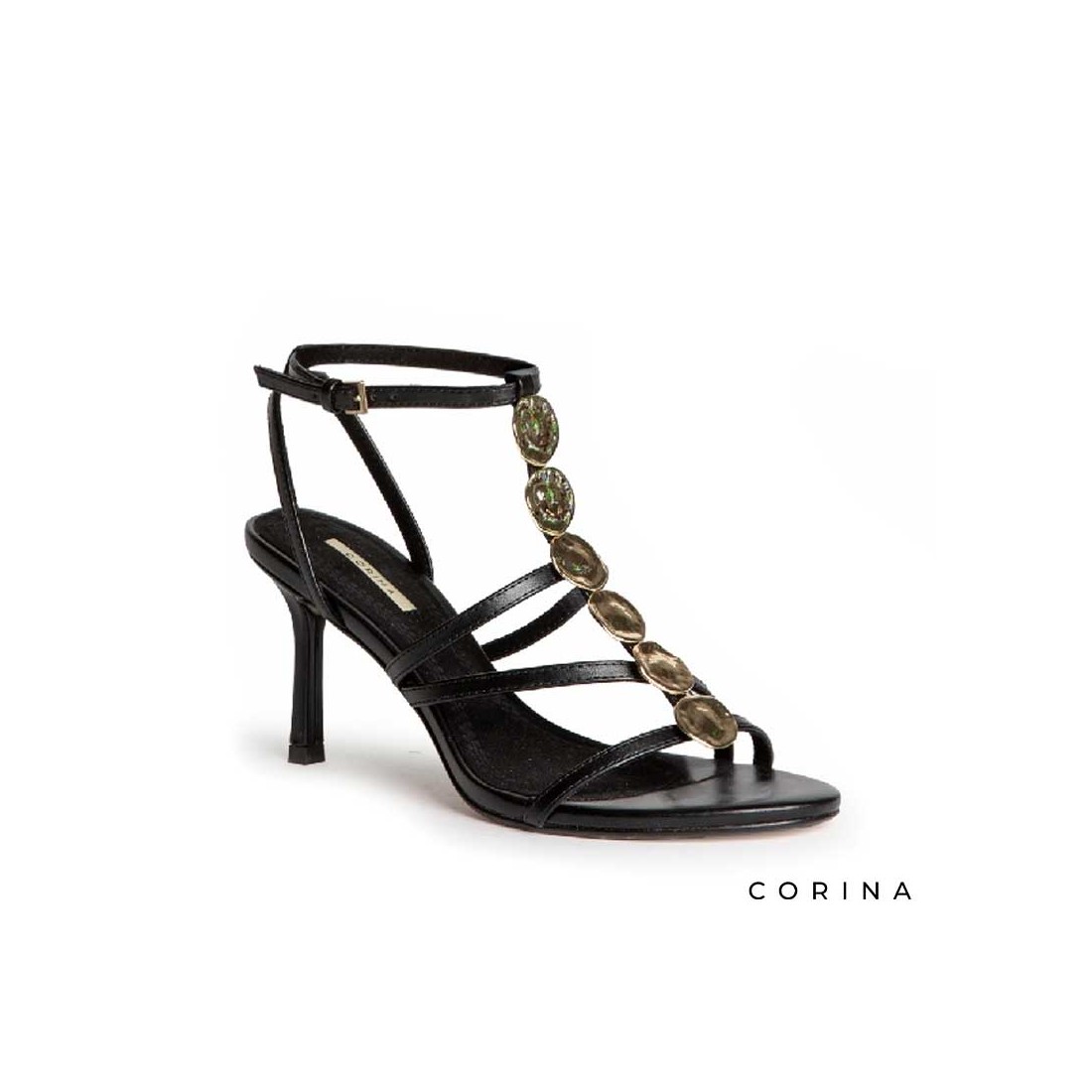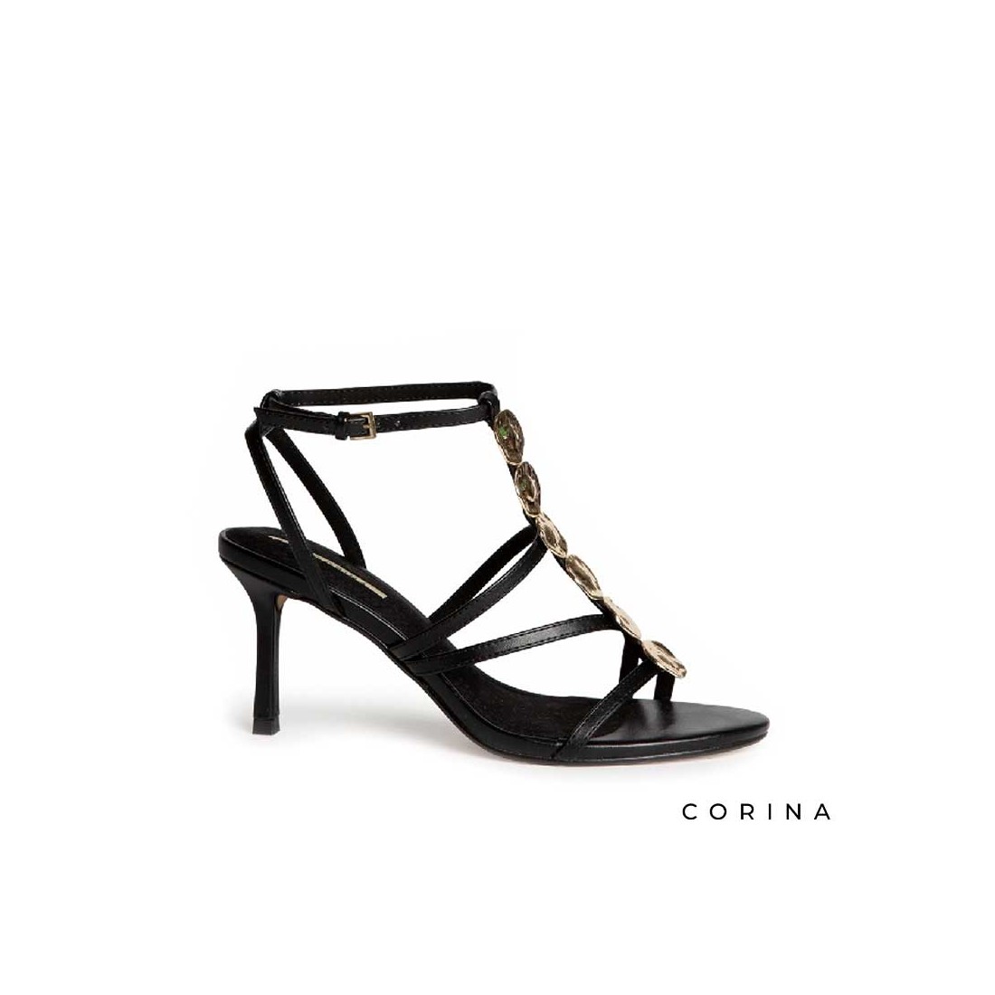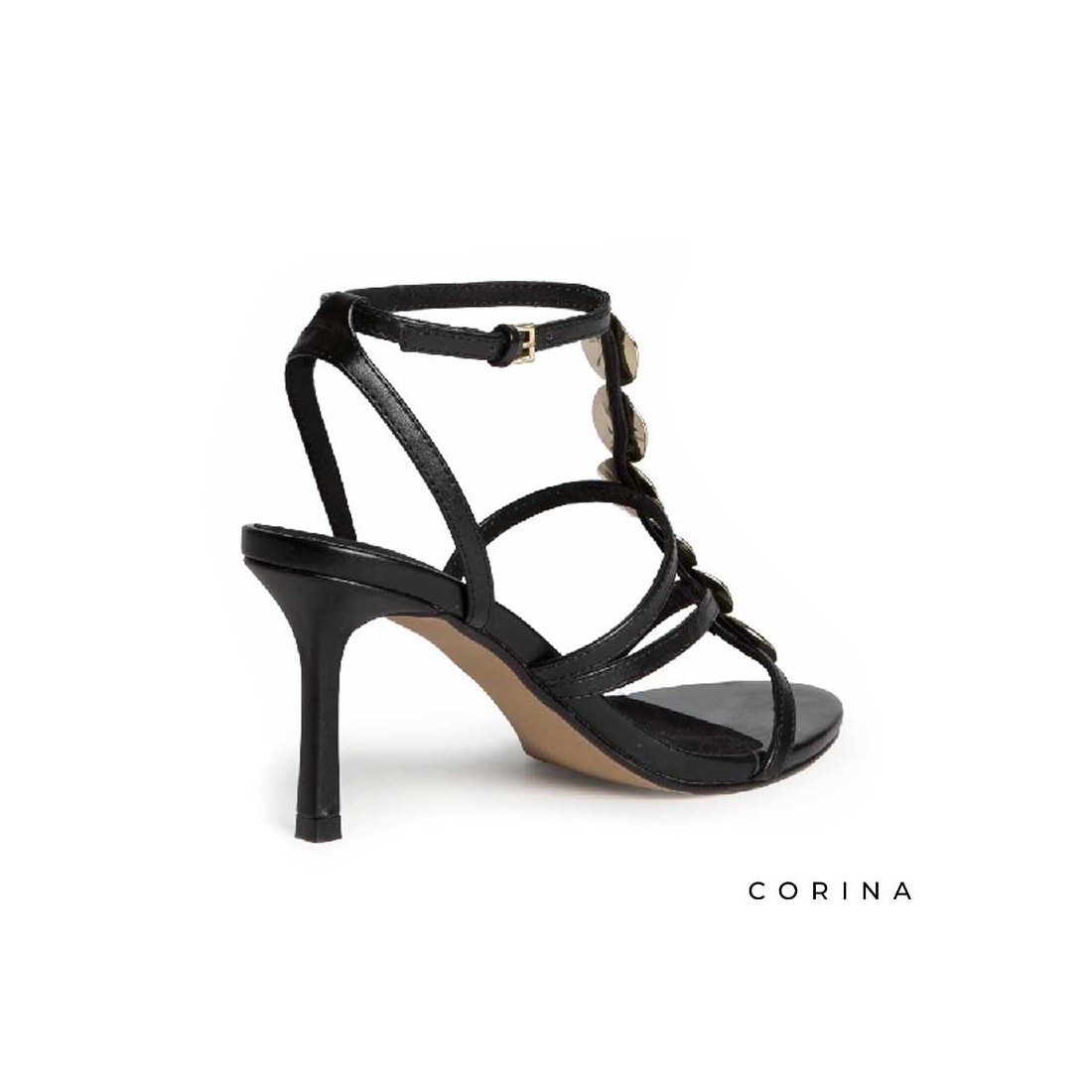 La sandalia tacón fino negra de Corina es el equilibrio perfecto entre elegancia minimalista y detalle sofisticado. Diseñada para estilizar la figura y aportar un acabado refinado a cualquier look de fiesta o evento especial, este modelo destaca por su silueta ligera y femenina.