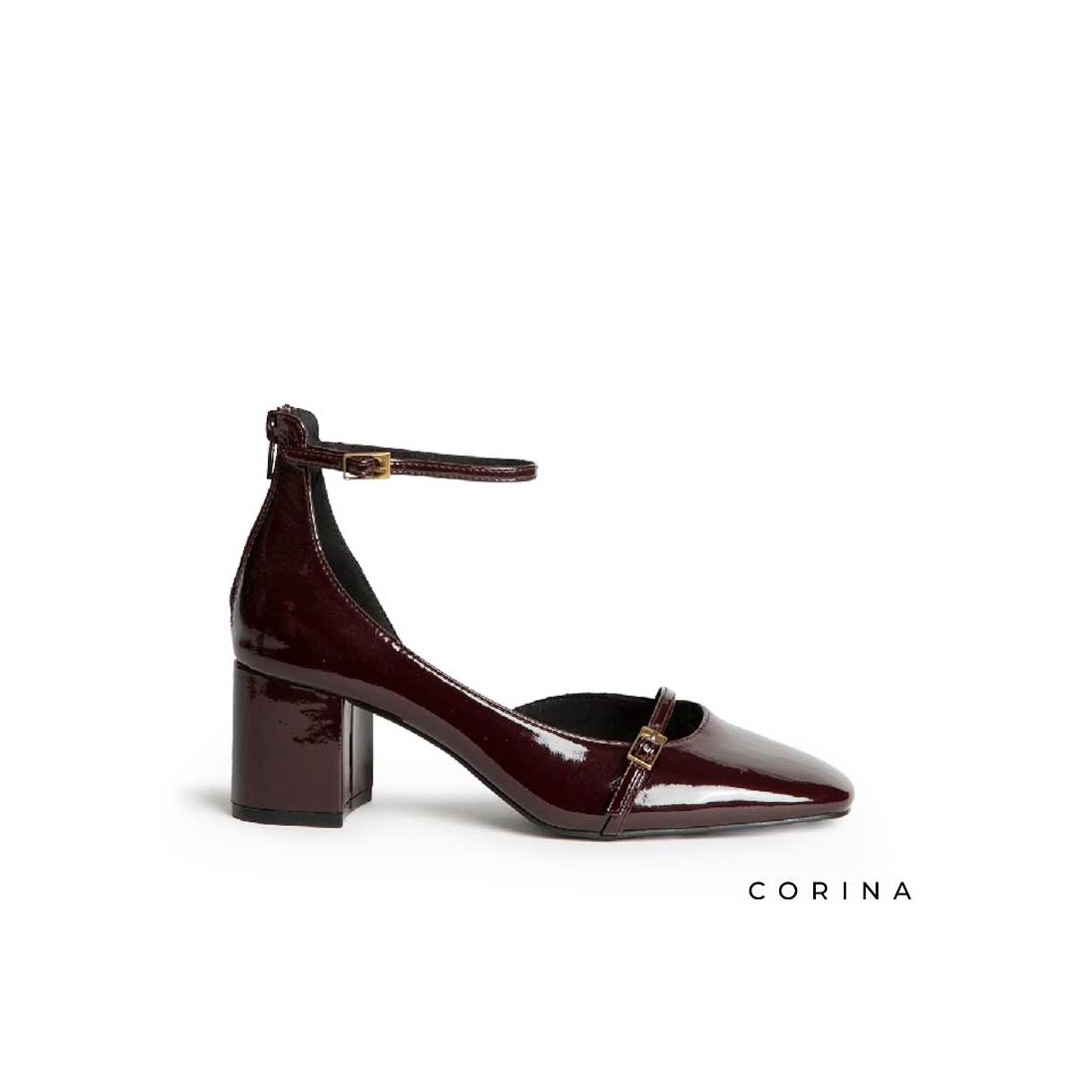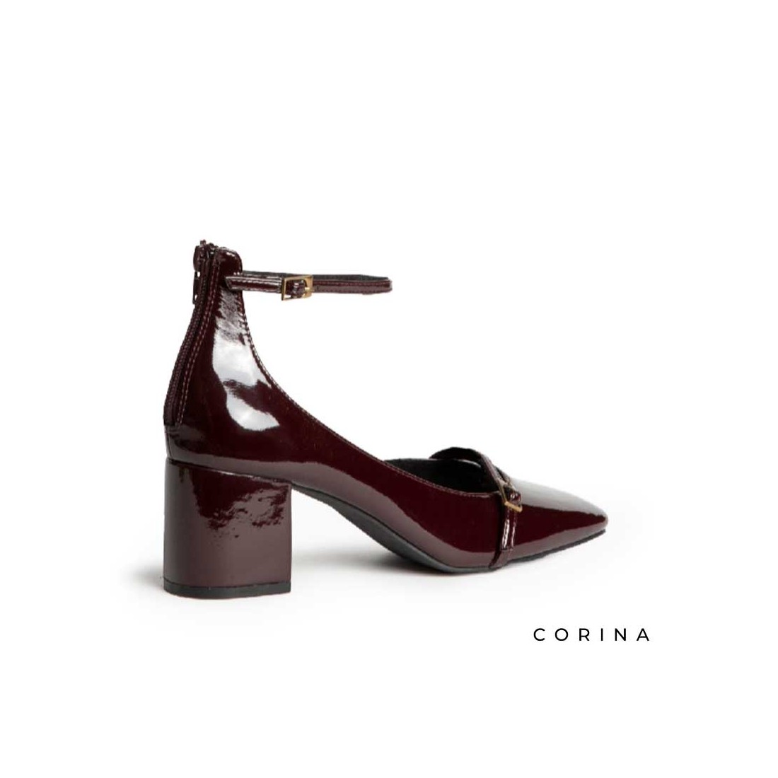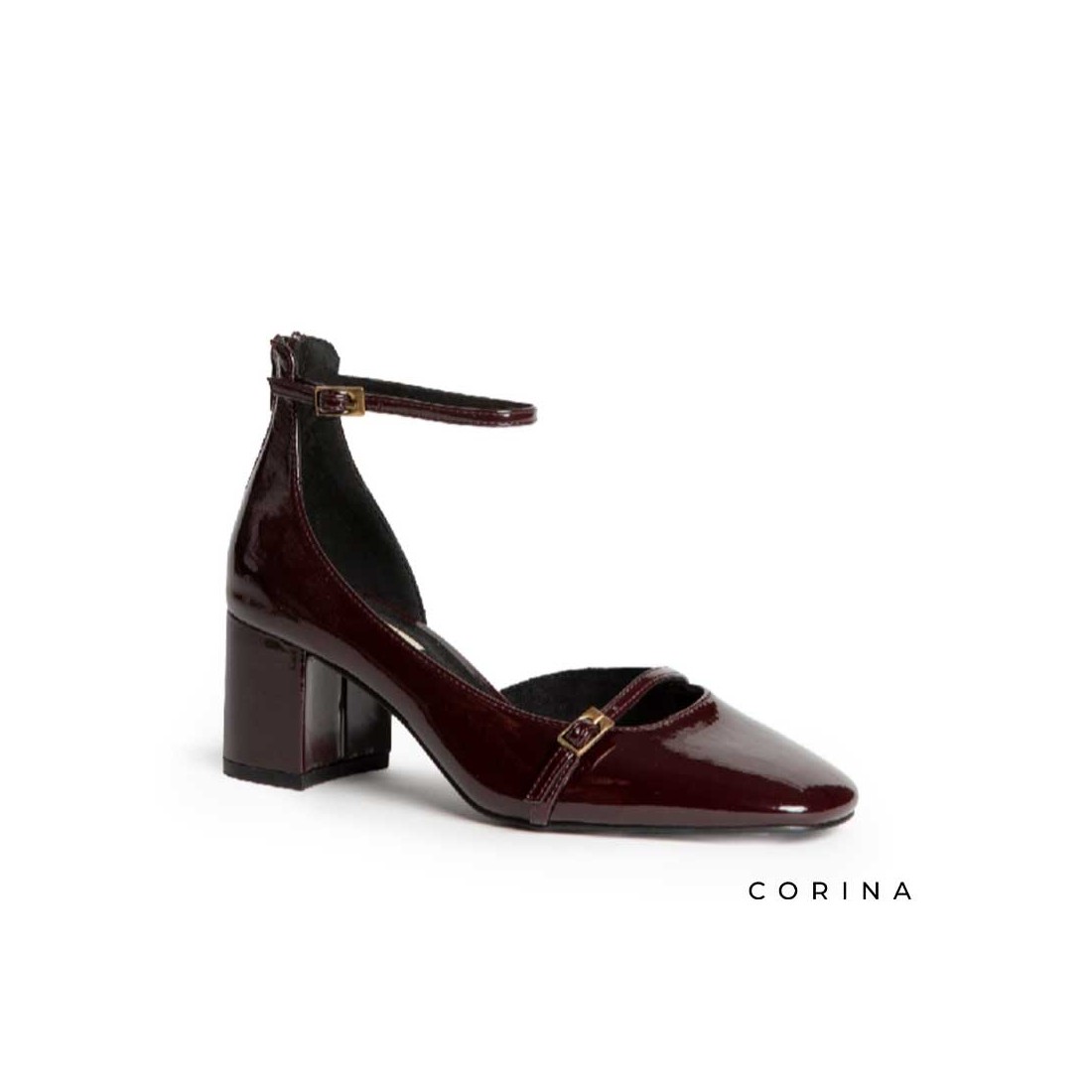 Diseño en charol burdeos, destacan por su hebilla en el empeine y pulsera con hebilla al tobillo, que estiliza y asegura la máxima comodidad. Su punta ligeramente cuadrada da un aire moderno mientras conserva la esencia Mary Jane de toda la vida.