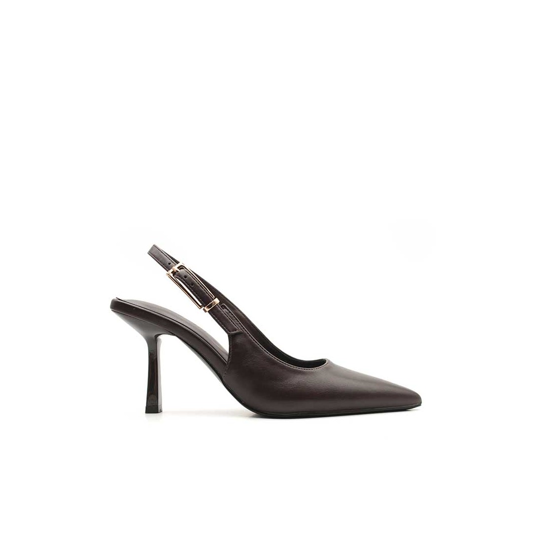 En color marrón, el tono estrella de la temporada, estos stilettos se mueven con naturalidad entre un outfit de oficina y un vestido de noche.