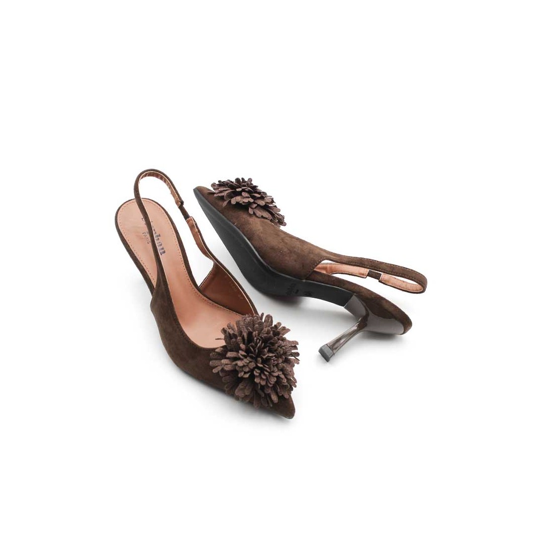 El detalle diferenciador es su adorno floral tipo pompón en la parte frontal, que aporta un toque femenino, ideal para elevar cualquier look de invitada, evento o fiesta especial. Además, su tacón fino de 7,7 cm estiliza la figura.