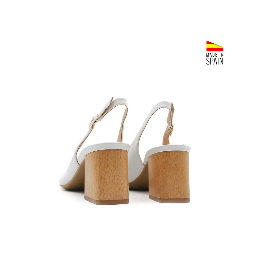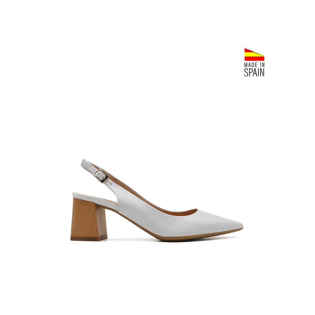 Este zapato de tacón destalonado en piel blanca es una opción perfecta para quienes buscan un modelo refinado pero cómodo para el día a día o eventos más formales.