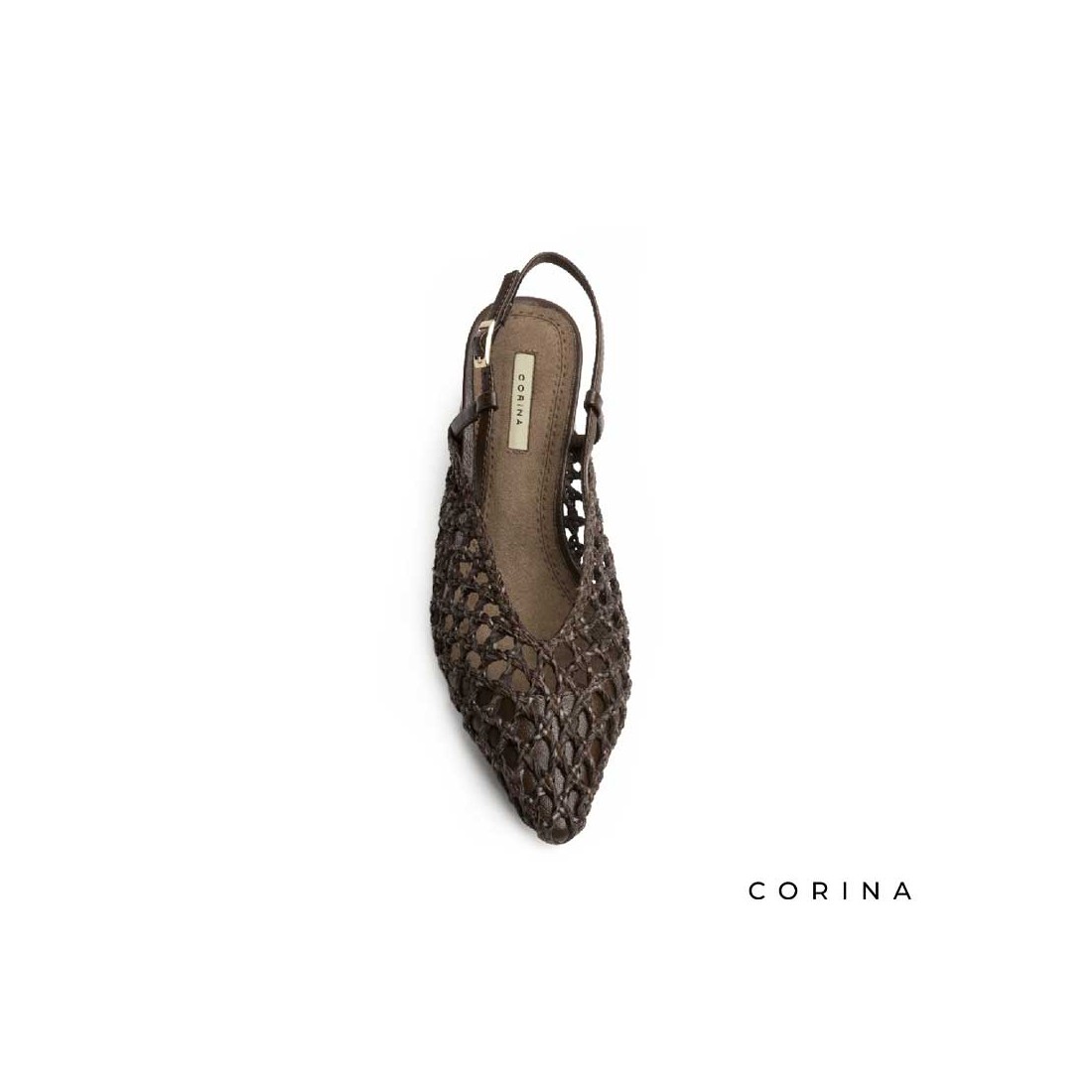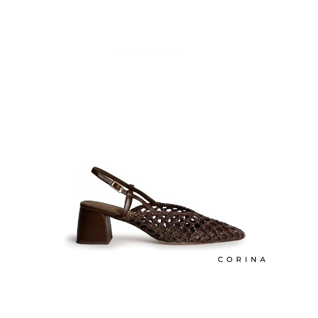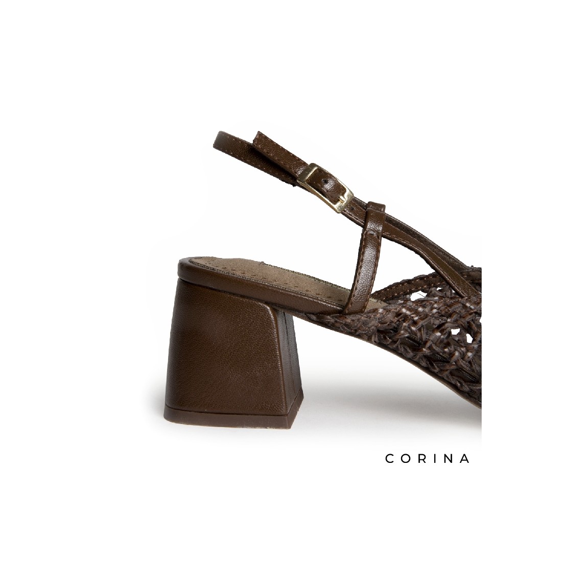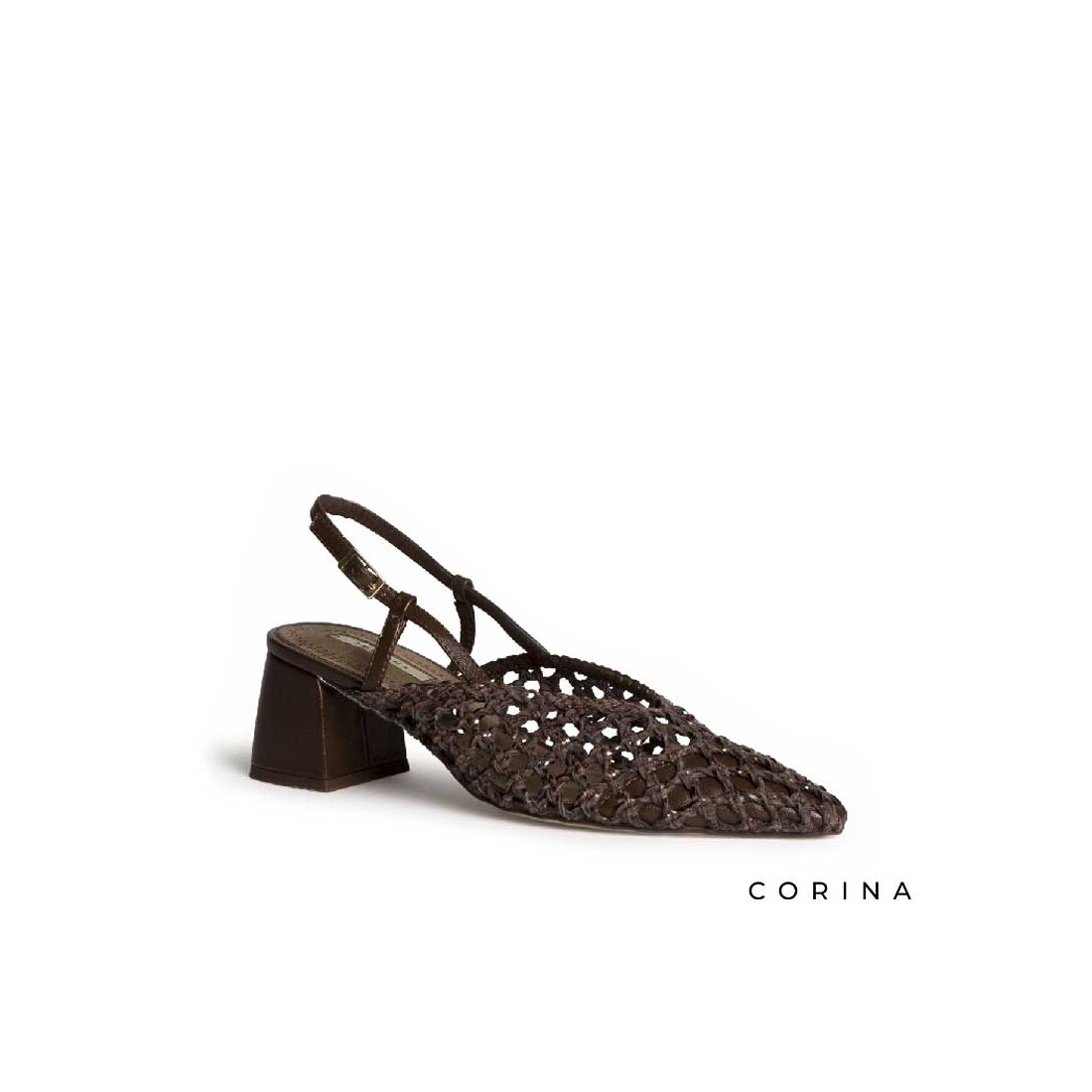 El zapato tacon trenzado en color marrón oscuro es una apuesta sofisticada con un matiz artesanal que marca la diferencia.