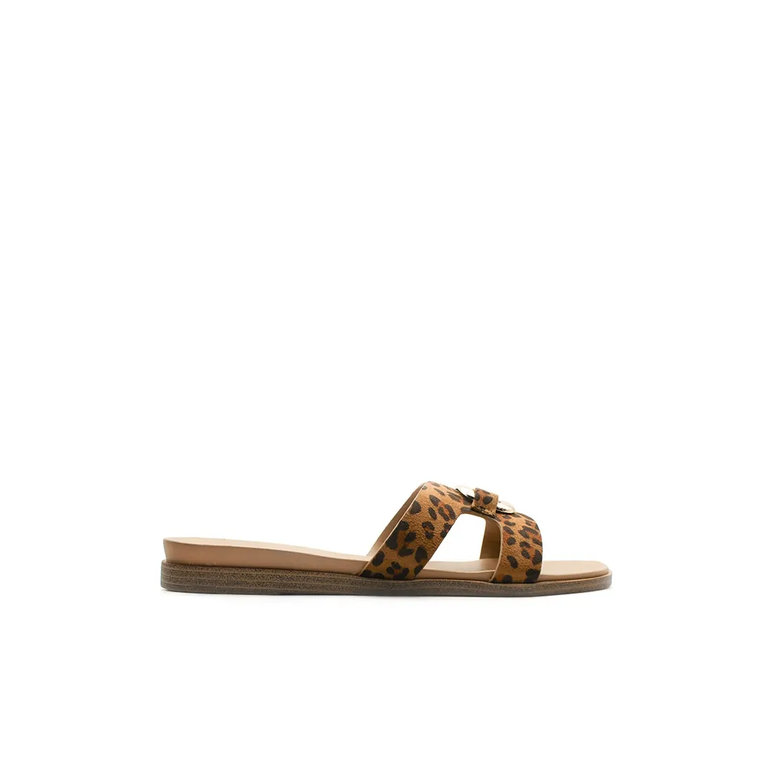 Su diseño de tallas 41, 42, 43 y 44 combina comodidad y estilo, con una pala ancha en material textil de antelina con estampado leopardo y un elegante detalle dorado en el centro.