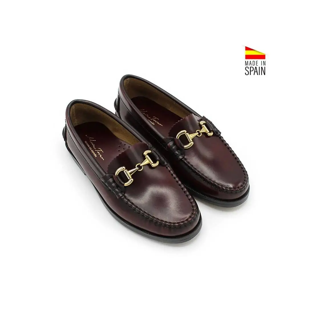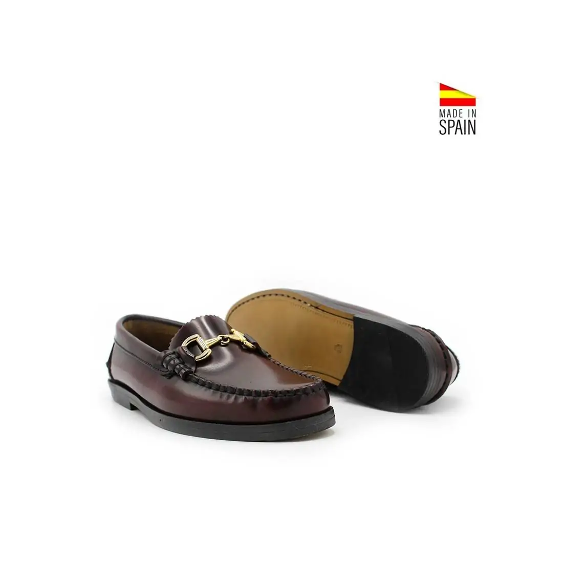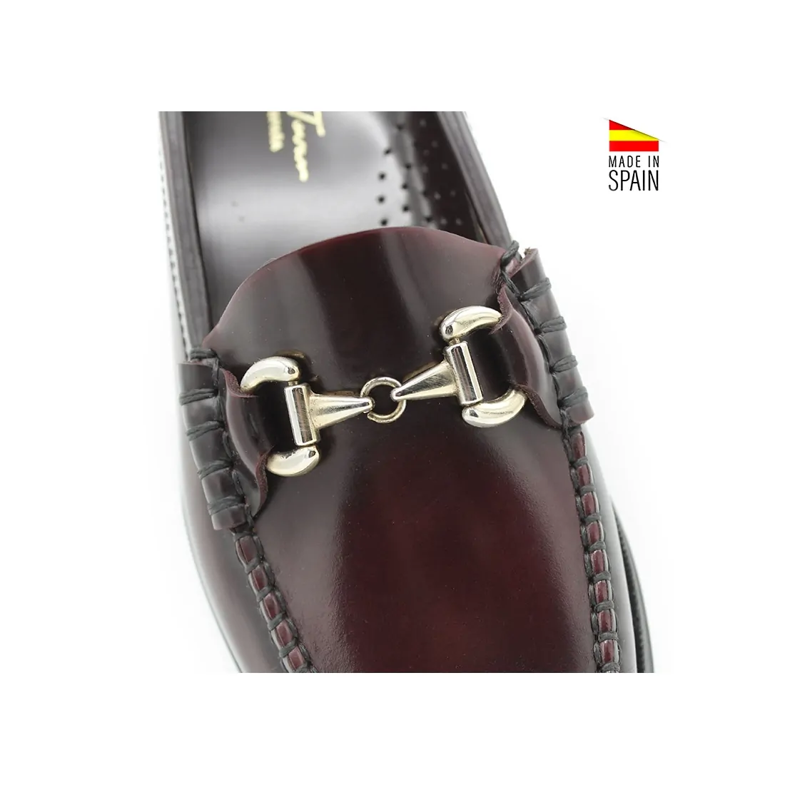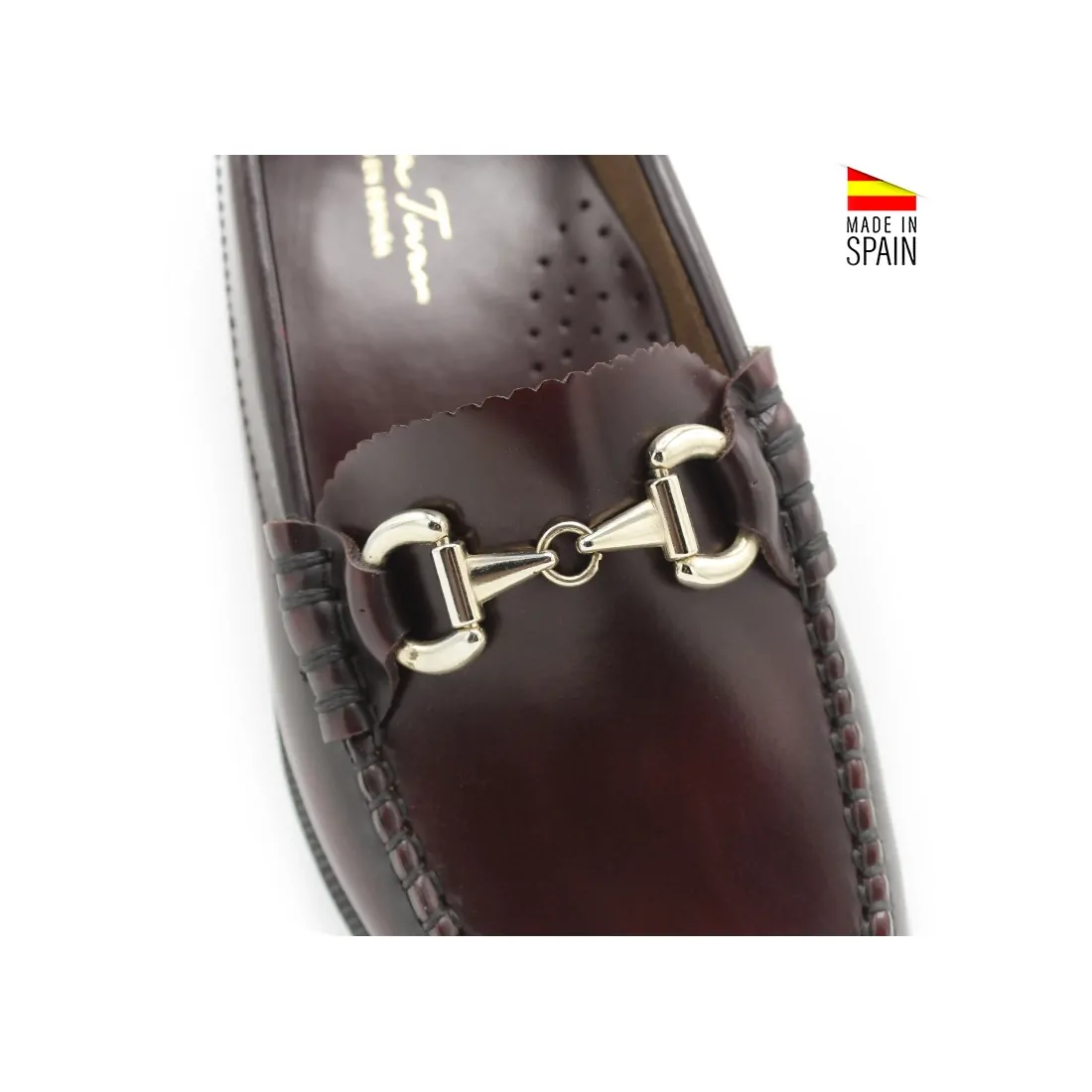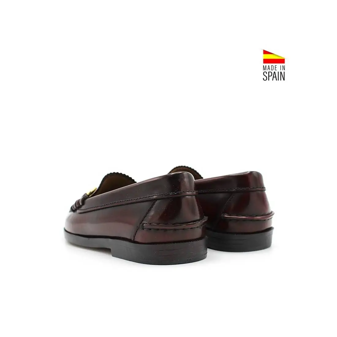 Estos mocasines, fabricados en España con piel florentic, destacan por su diseño de alta calidad y su exclusivo detalle de cadena dorada en el empeine, lo que les aporta un toque de lujo perfecto para cualquier ocasión.
