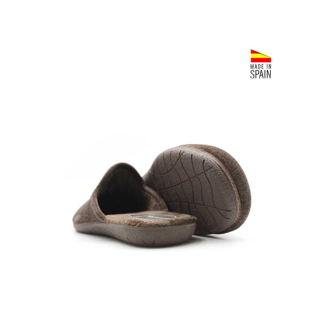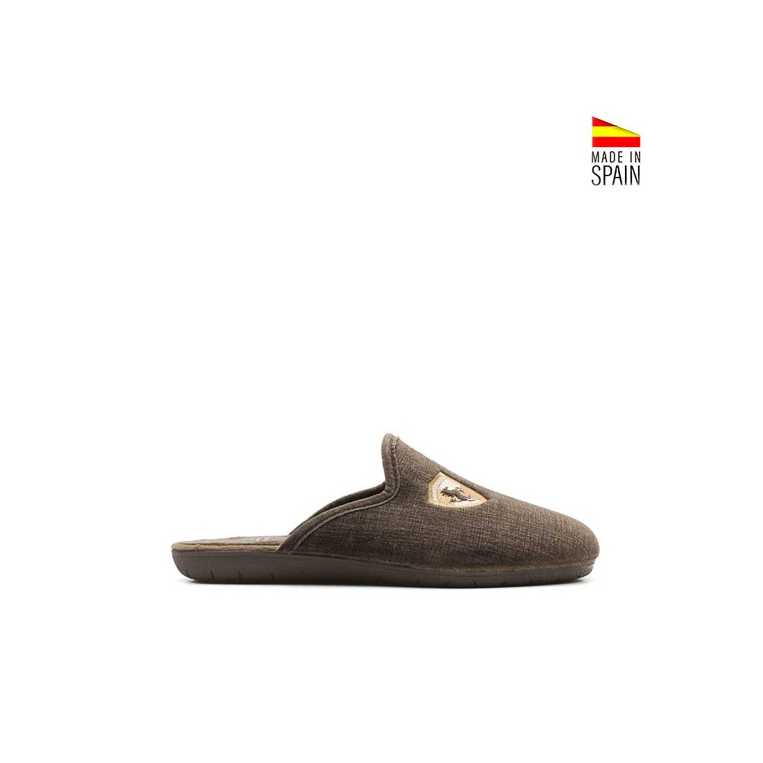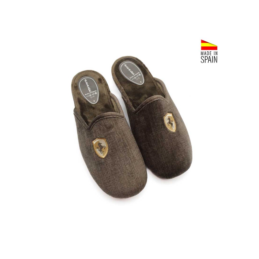 Diseño en color marrón con escudo bordado, confeccionadas en textil aterciopelado de tacto suave que aporta comodidad y un estilo elegante para estar en casa. El interior con forro de pelo mullido envuelve el pie y mantiene el calor incluso en los días más fríos.