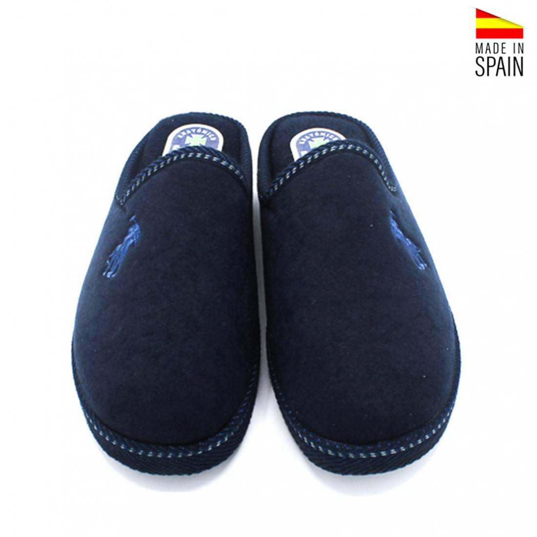 Nuestras zapatillas están diseñadas pensando en tu confort. Fabricadas en un suave y cálido color azul marino, estas zapatillas son ideales para mantener tus pies calientes en las estaciones más frías.