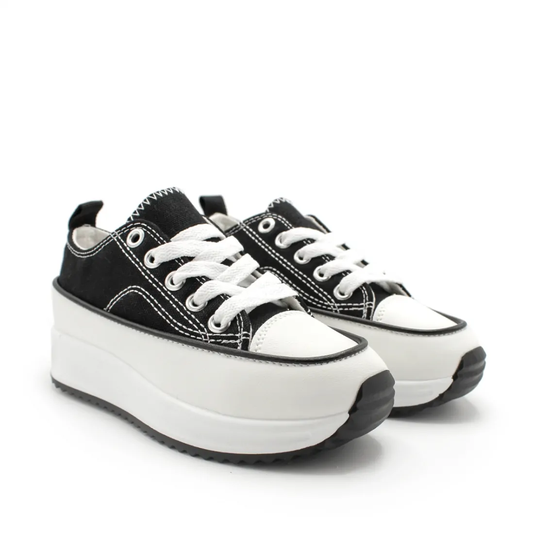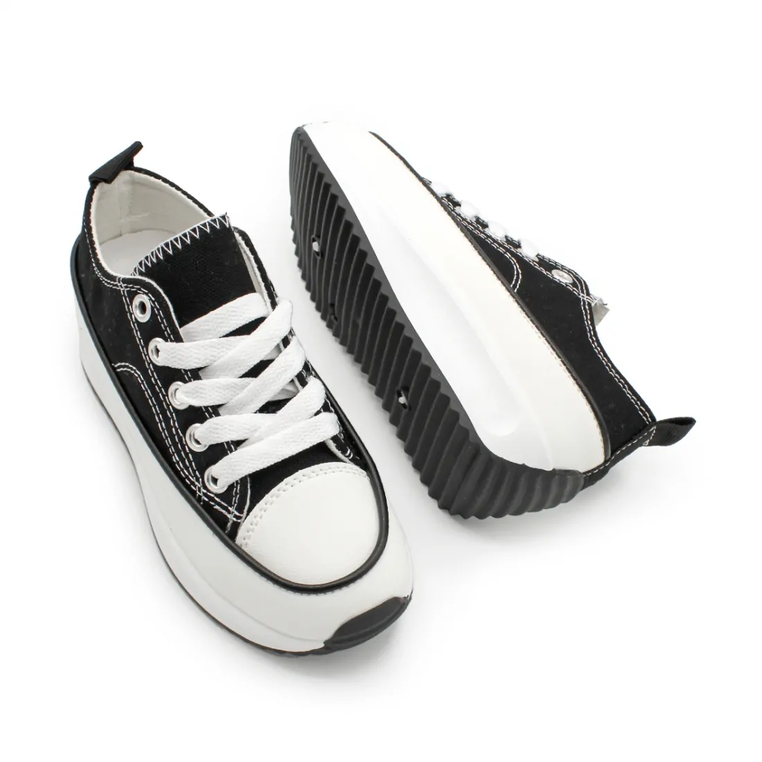 Confeccionadas en lona de color negro, con laterales y puntera en polipie en color blanco, estas zapatillas destacan por su estilo versátil y fácil de combinar. Además, la suela dentada de goma proporciona tracción y estabilidad en cada paso, ¡ideal para las aventuras diarias de tu pequeña! Producto de importación.