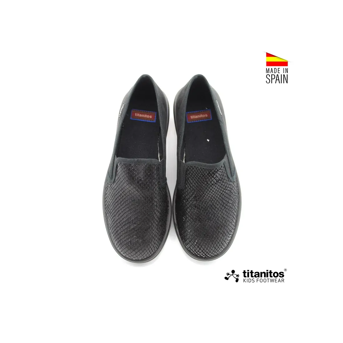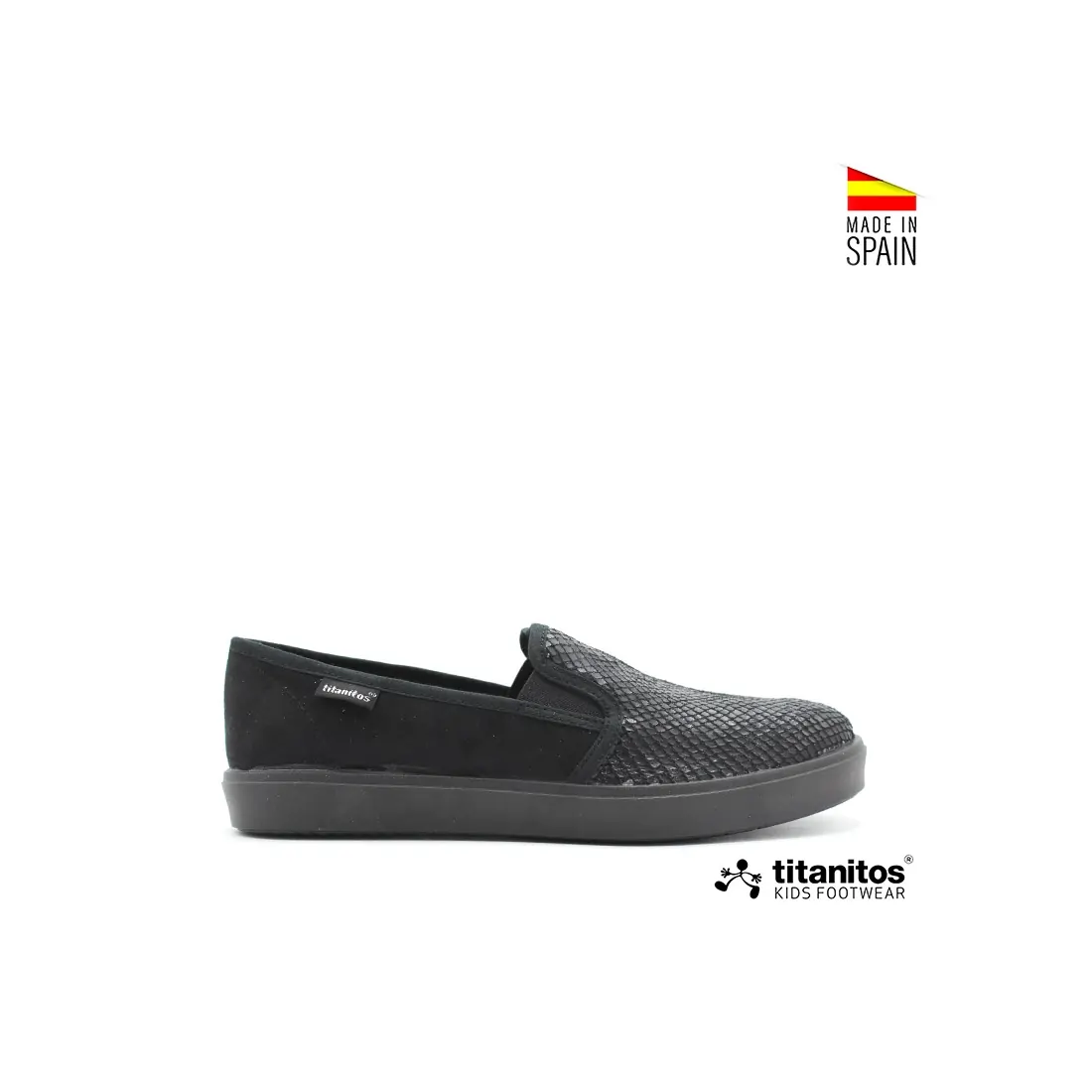 Esta Bamba Negra Serpiente es la opción ideal para las niñas que buscan estilo y comodidad en su calzado diario.