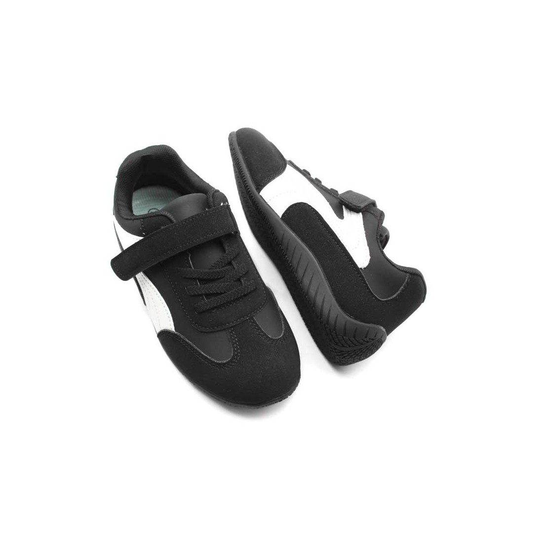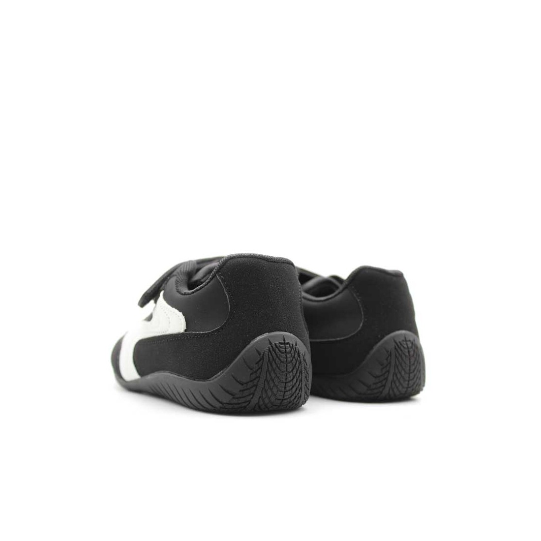 El diseño en color negro con raya lateral blanca aporta un estilo deportivo fácil de combinar con cualquier look. Incorporan cordones elásticos y cierre de velcro, un sistema práctico que asegura una buena sujeción y facilita que las niñas puedan calzarse solas con rapidez.