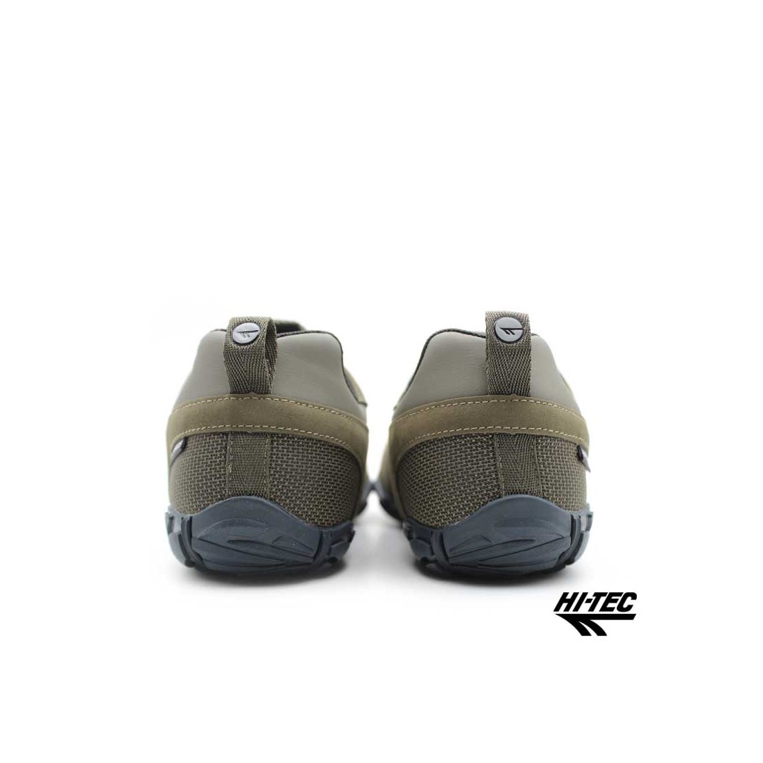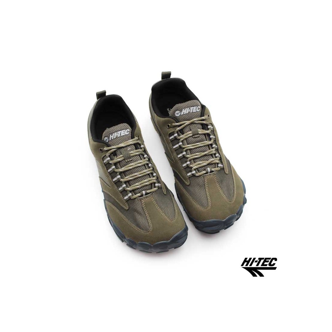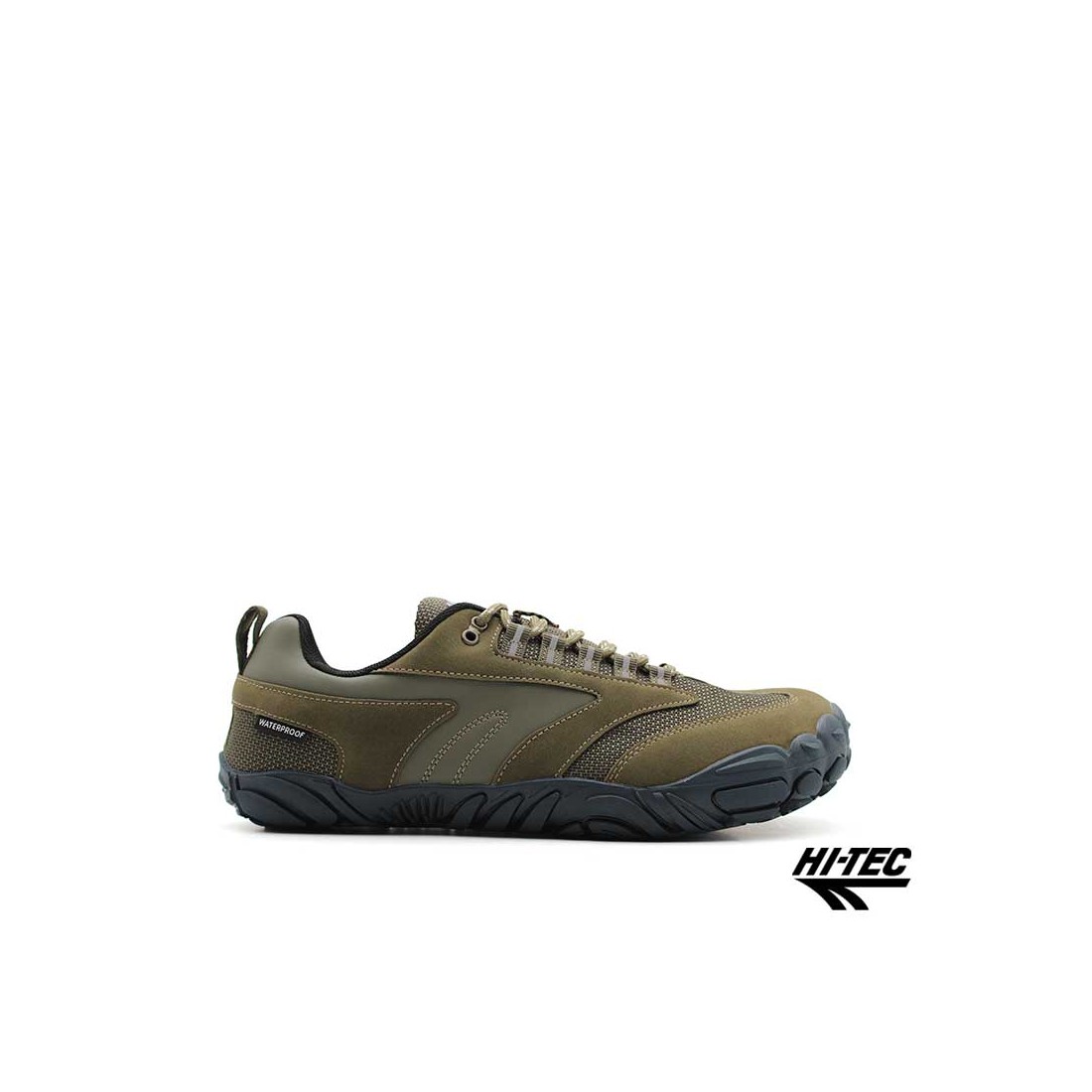 La Zapatilla Hi-Tec Hombre en color verde khaki con suela negra es ideal para quienes buscan un calzado impermeable, cómodo y resistente.
