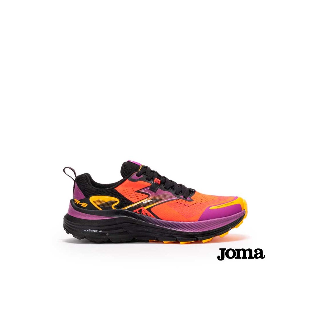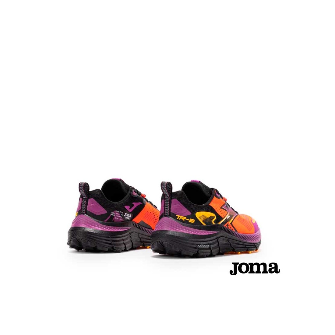 Las Joma Tr 5 en color coral con detalles en morado y negro son el aliado perfecto para tus rutas de montaña. Su upper de mesh transpirable con perforaciones VTS mantiene el pie ventilado y seco incluso en esfuerzos largos.
