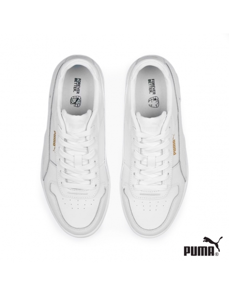 Este modelo, conocido como Carina Street, combina estilo y comodidad a la perfección. Diseño en color blanco con logo lateral y trasero en color dorado. Estas zapatillas de Puma destacan por su plataforma de 3,6 cm de altura, que añade un toque de altura y sofisticación a cualquier look.