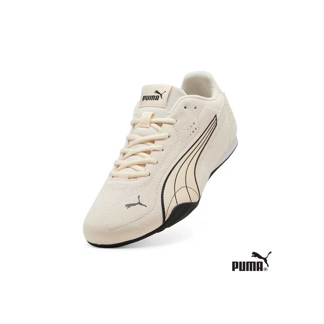 Las Zapatillas Puma Beige modelo Catch SD son la elección ideal para hombres que buscan un estilo moderno con un toque retro inspirado en el motorsport.