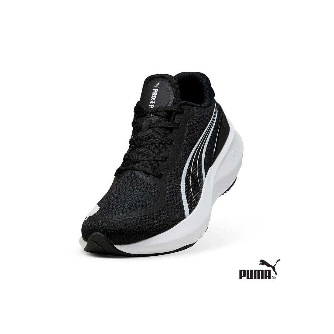LLas Zapatillas Puma Mujer Running modelo Scend Pro 2 en color negro combinan diseño, comodidad y rendimiento en un calzado pensado para acompañarte en cada entrenamiento.