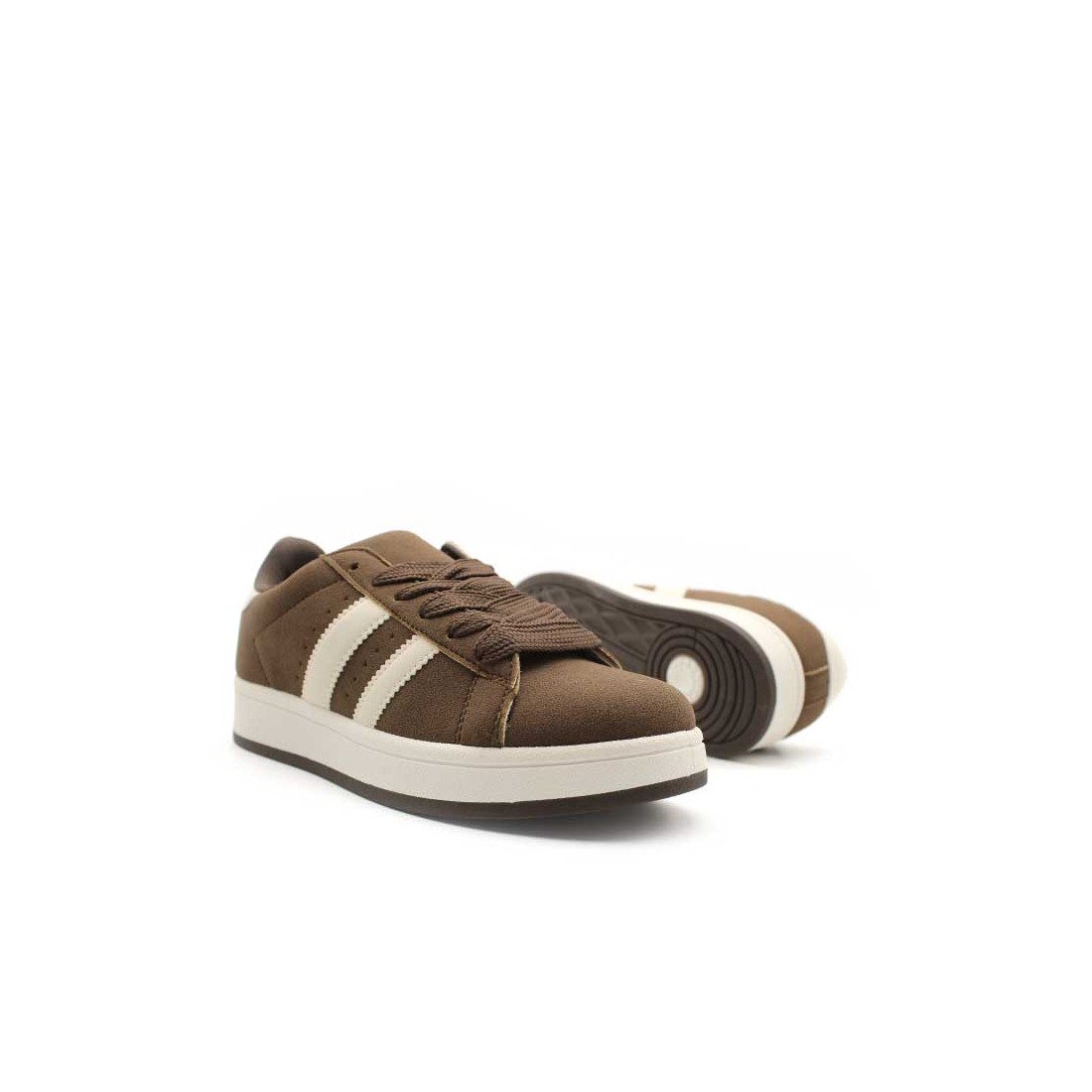 Su diseño en marrón chocolate, combinado con las rayas laterales y el talón en beige, convierte a estas zapatillas en un básico de temporada 2025 - 2026 que combina con todo tu armario.