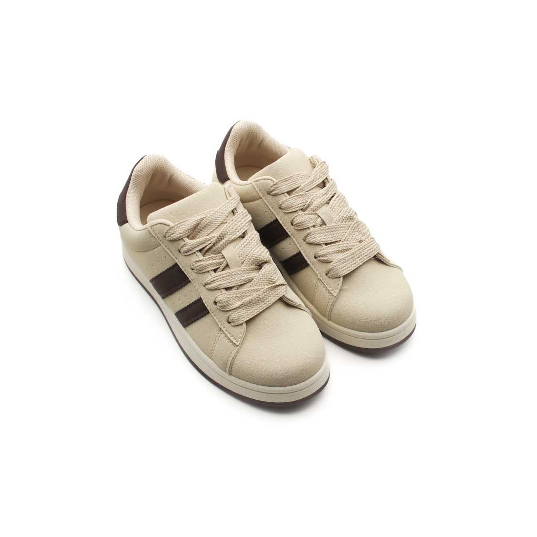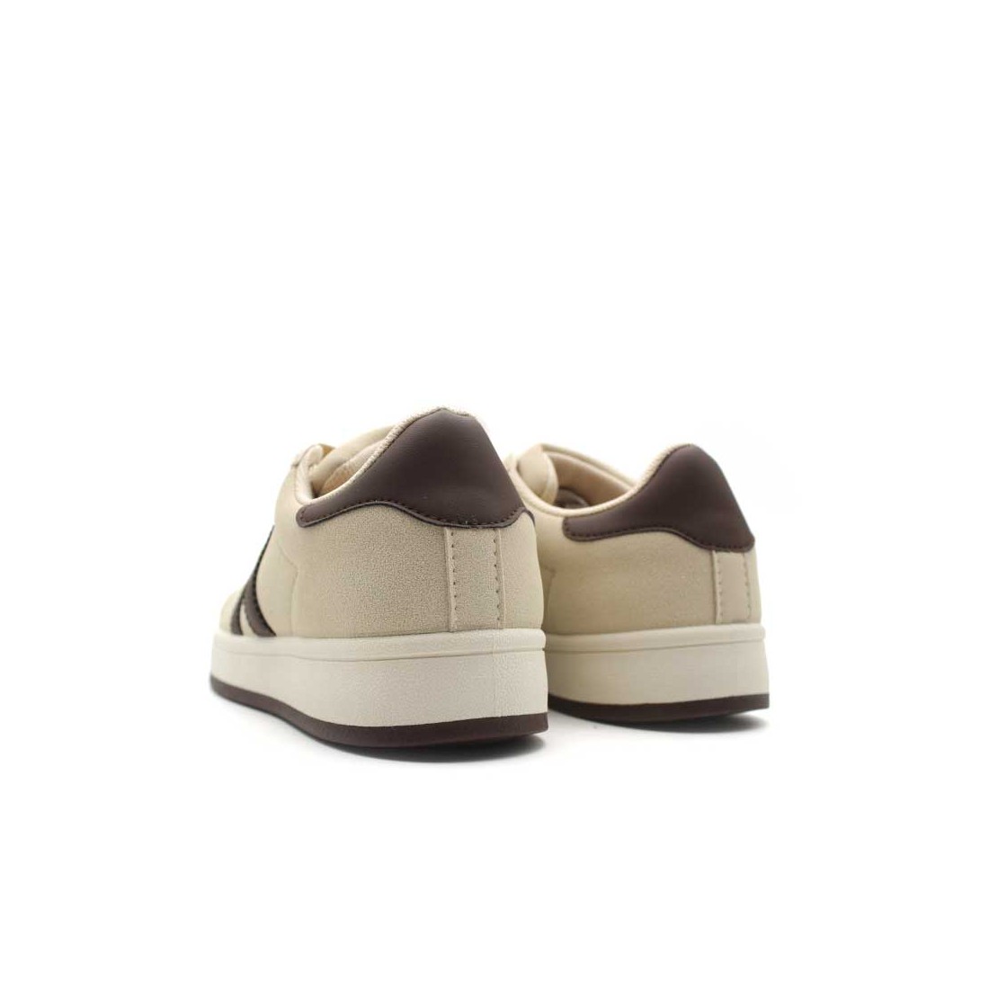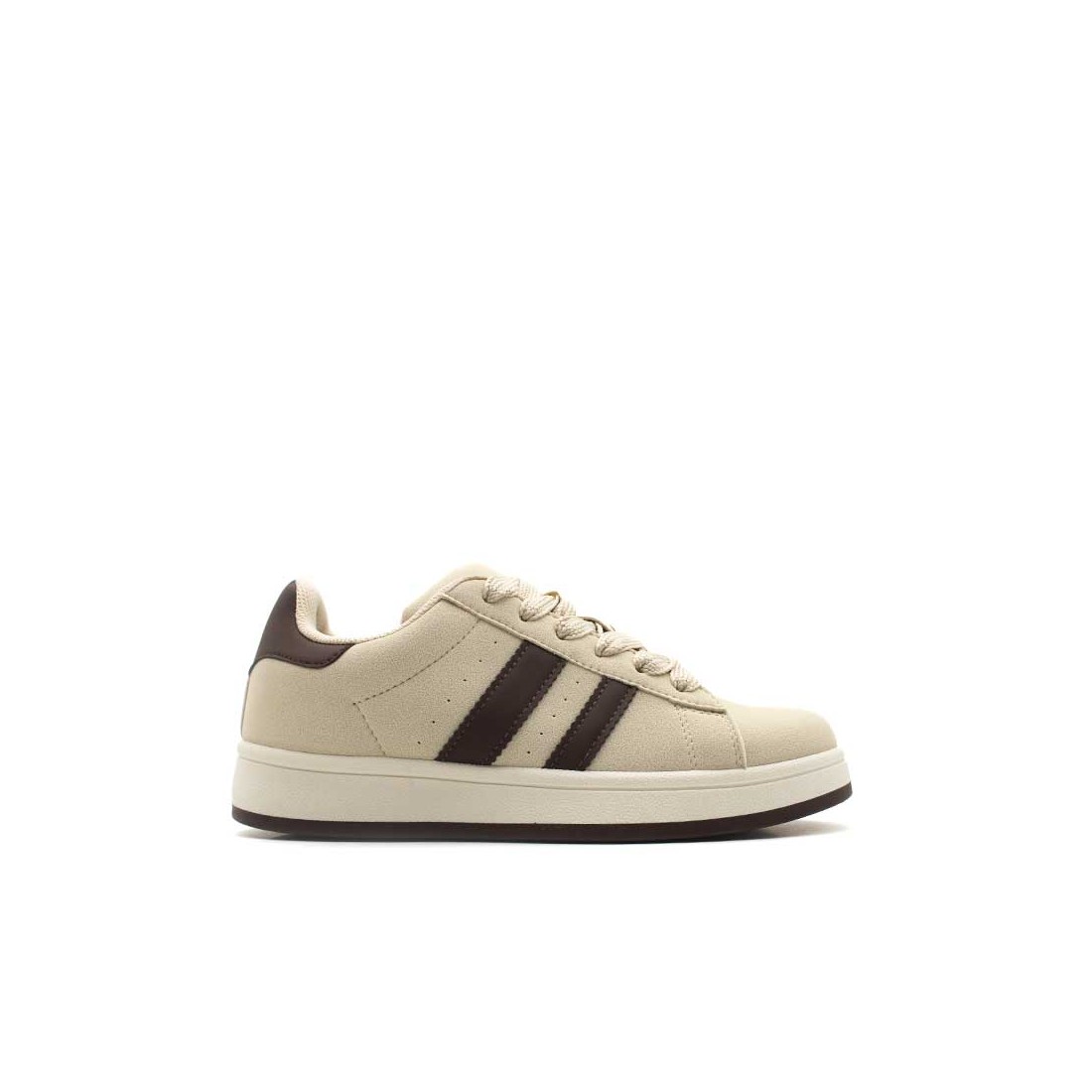 Su tono beige, combinado con las rayas laterales y el talón en marrón, aporta un aire moderno y actual, perfecto para destacar en cualquier look urbano.