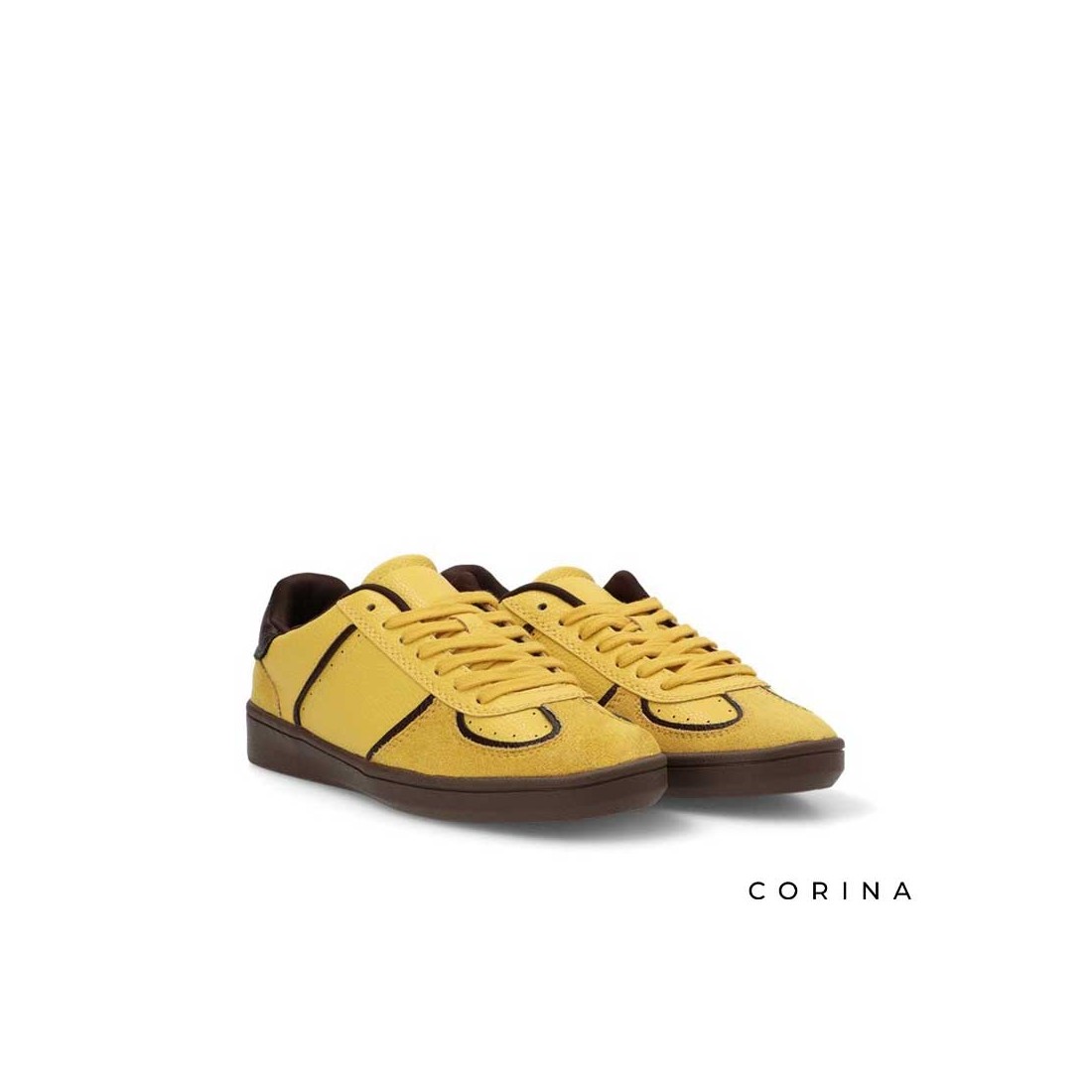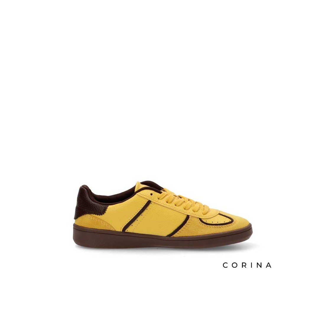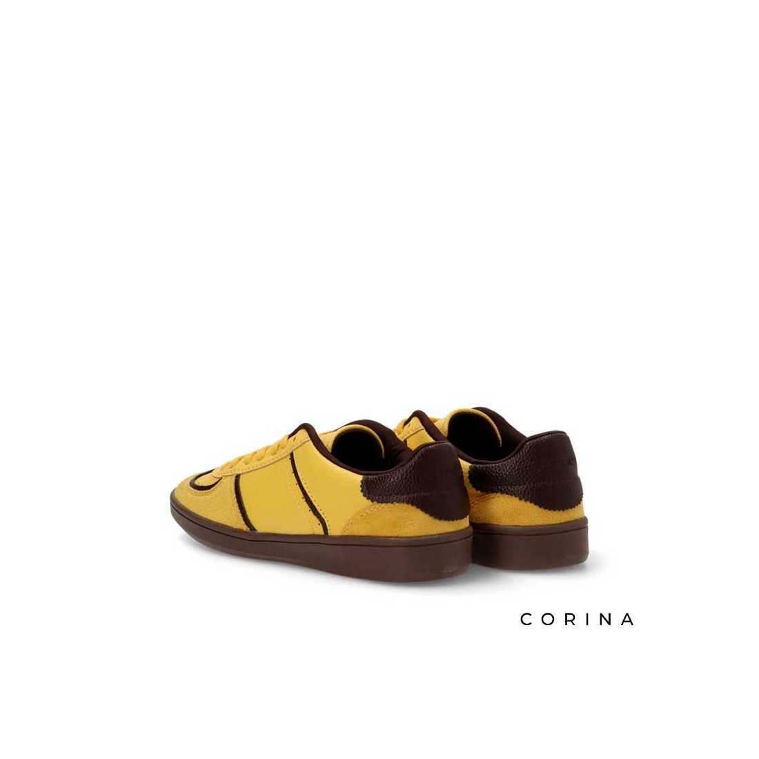 Su diseño combina el color amarillo vibrante con detalles en tono café oscuro, creando un contraste moderno y lleno de personalidad.