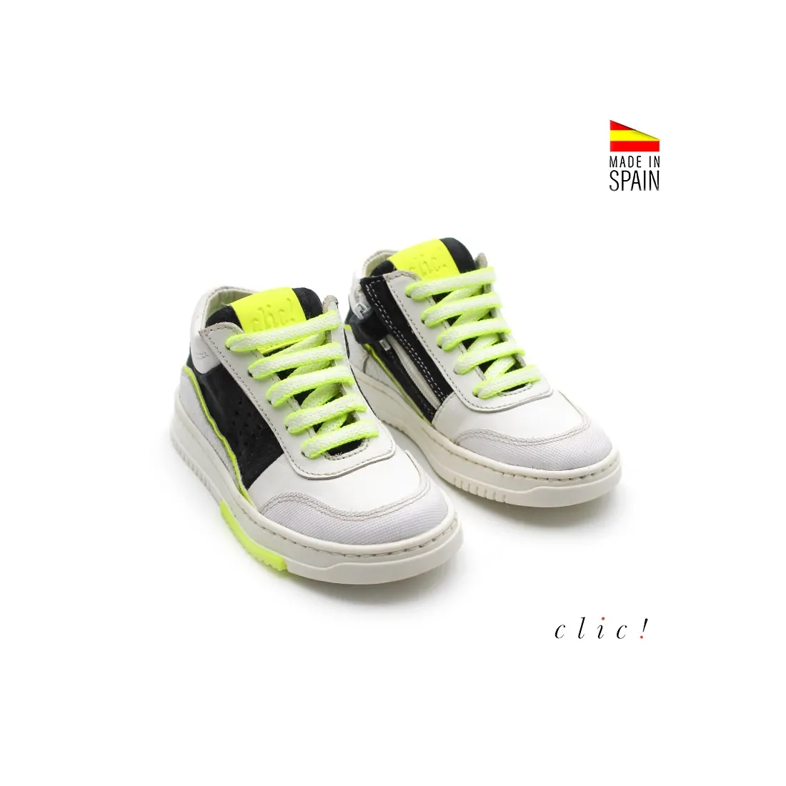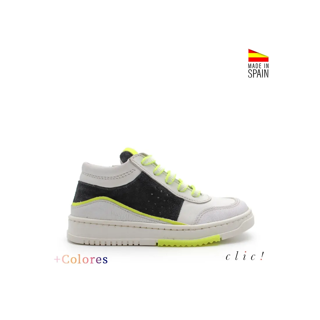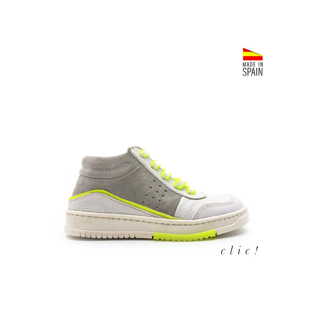 Botines estilo baloncesto infantiles Clic! con cierre de cordones están hechos en piel de alta calidad, con una suela de goma antideslizante para asegurar la comodidad y seguridad de tu hijo.