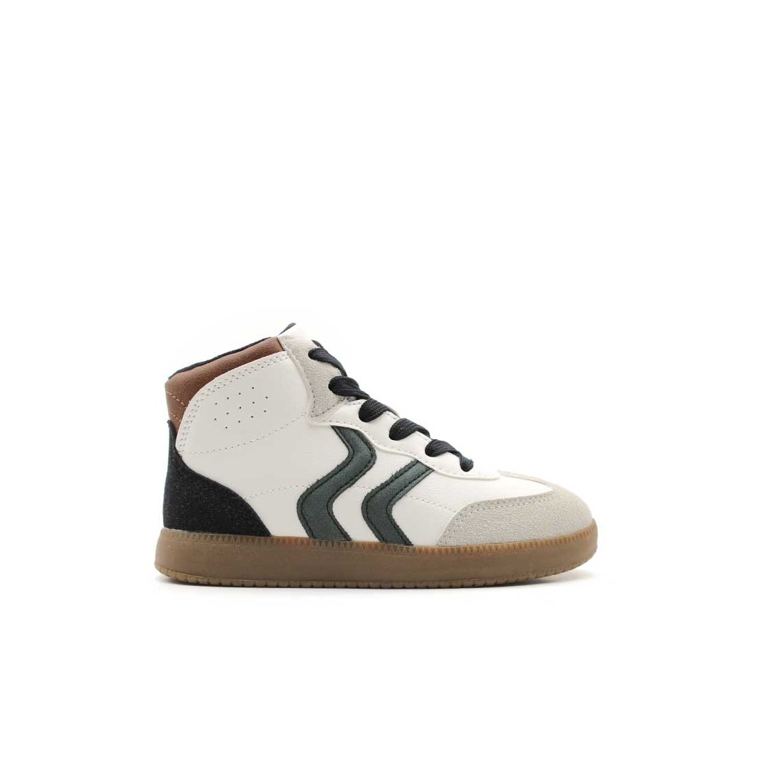 Este modelo de caña alta en color blanco con detalles en verde, negro y marrón combina un diseño urbano muy actual con toda la practicidad que los peques necesitan. Disponibles desde la talla 25 a la talla 36.