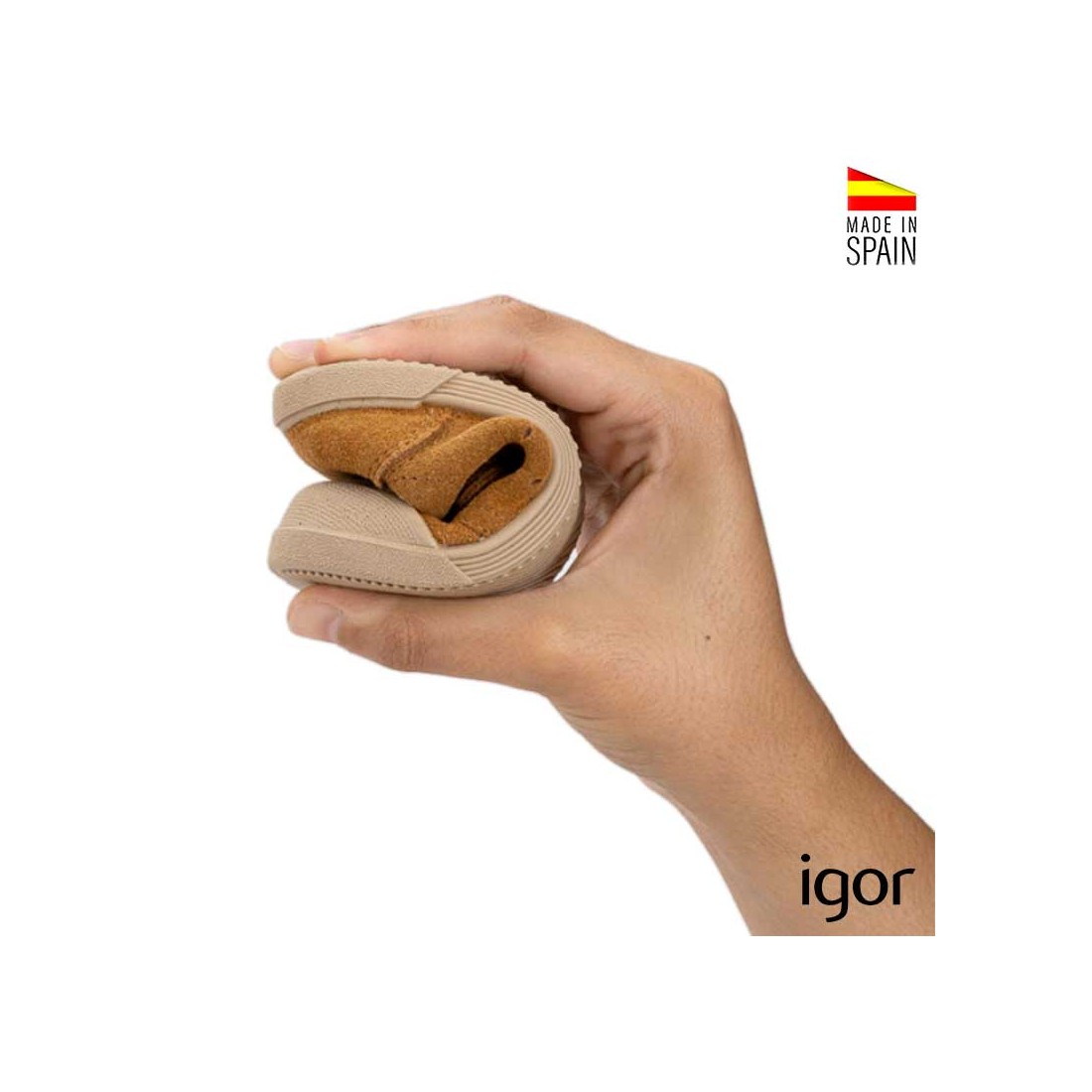 La suela de goma antideslizante completa un calzado versátil y resistente, perfecto para acompañar la energía de los niños. Fabricadas en España por la marca infantil Igor.