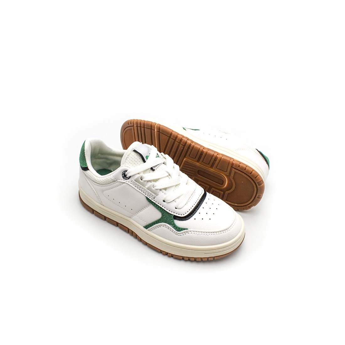 El diseño en blanco con detalles en verde aporta personalidad sin resultar excesivo, manteniendo ese equilibrio perfecto entre básico y diferente. Las perforaciones delanteras no solo refuerzan el estilo court, sino que también mejoran la transpiración.