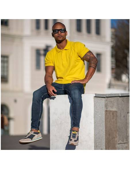 Este modelo de deportiva casual con cordón elástico, será tu mejor aliada eta temporada, el confort perfecto para cualquier momento. Es de color azul marino, gris y amarillo. Cuenta con cómoda y flexible suela de goma antideslizante.