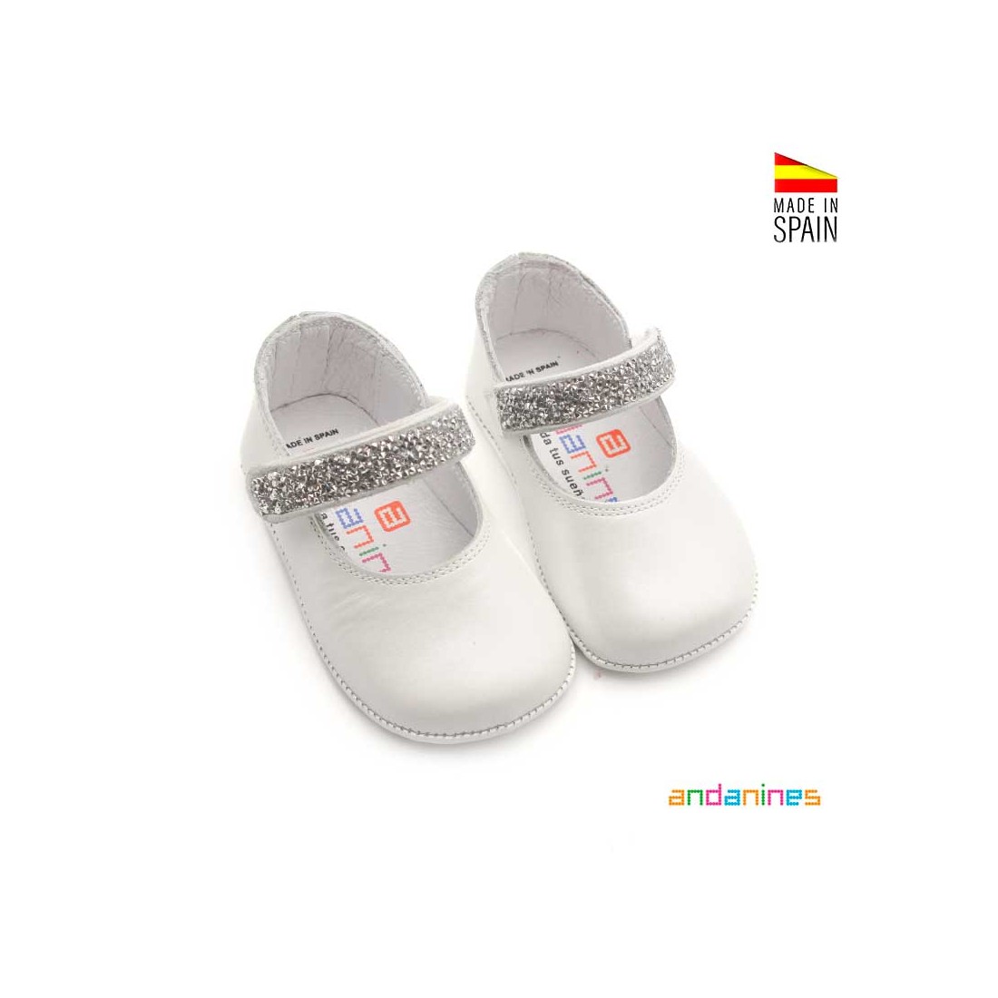 Fabricadas en España por Andanines, estas merceditas reflejan la dedicación artesanal y la calidad que caracteriza a la marca. Perfectas para ceremonias, bautizos o como primer calzado de diario con estilo.