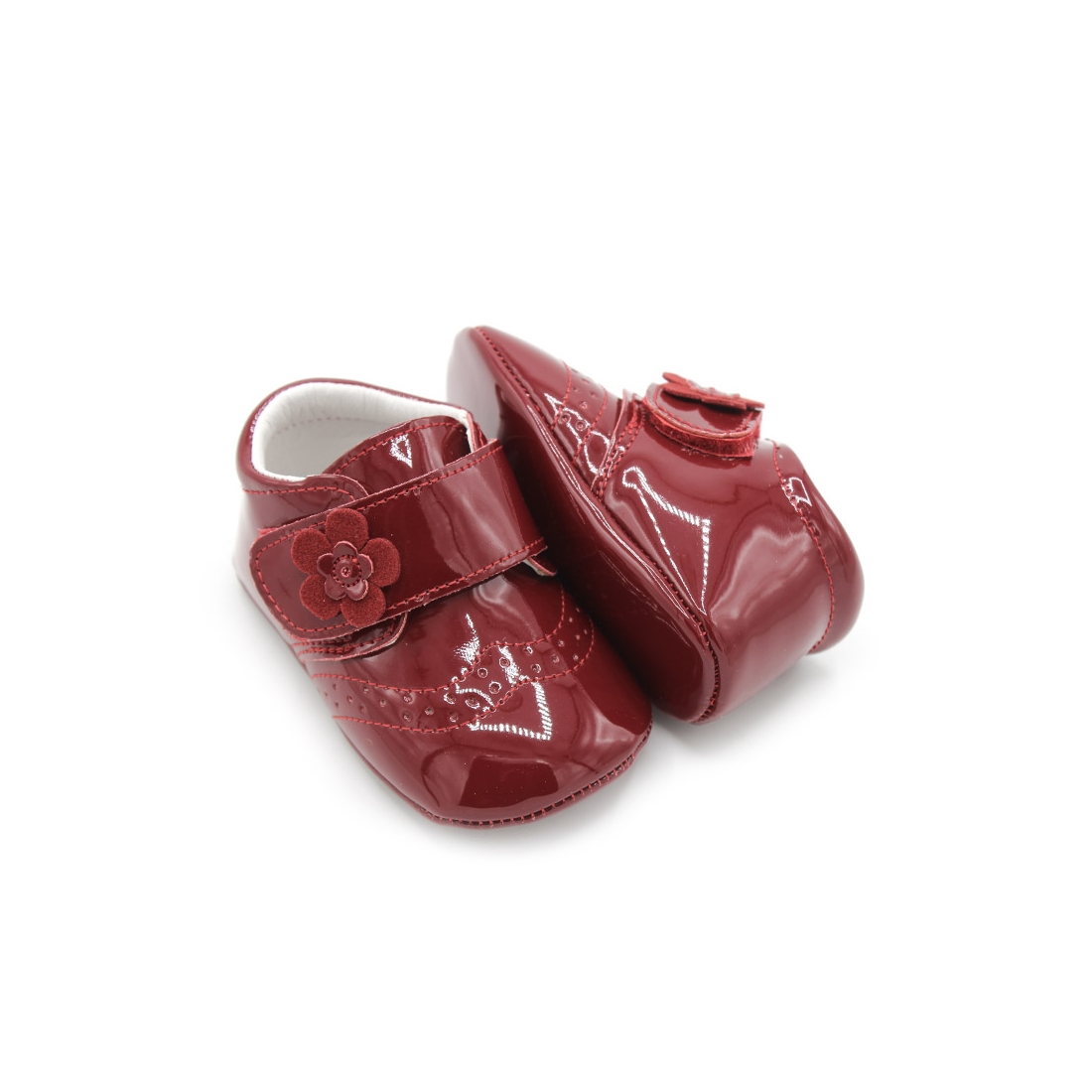 Los Botines Bebe en color burdeos, fabricados en piel charol, ofrecen un toque elegante y cálido para los pies del bebé.