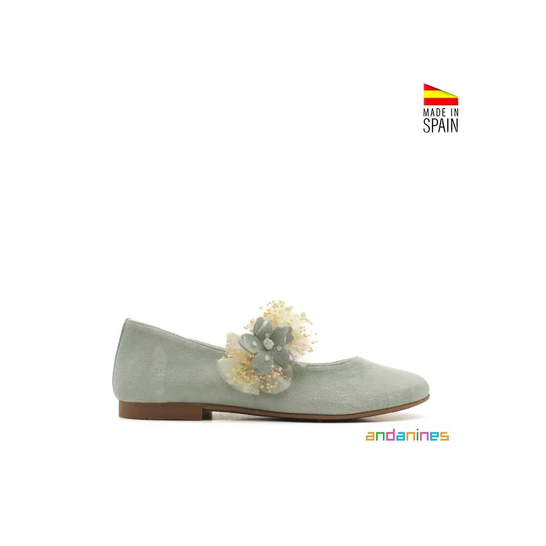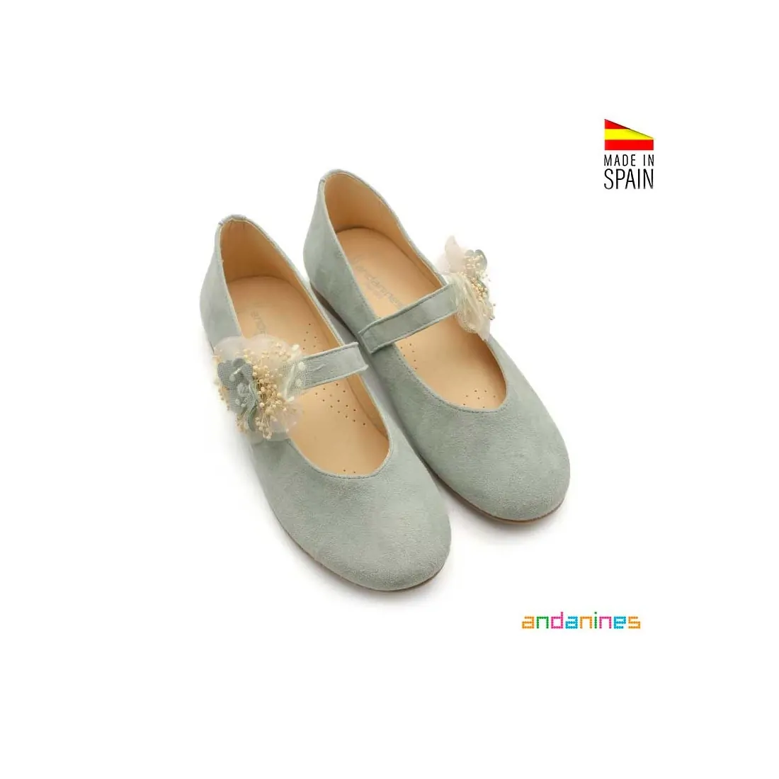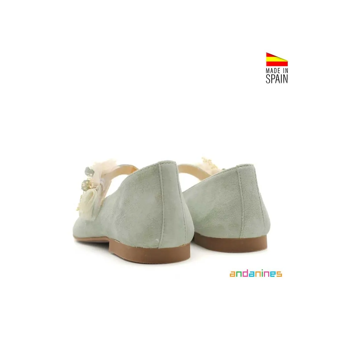 Estos zapatos de comunión para niña en color verde agua combinan delicadeza, comodidad y un diseño actual que encaja a la perfección con vestidos de comunión y looks especiales.