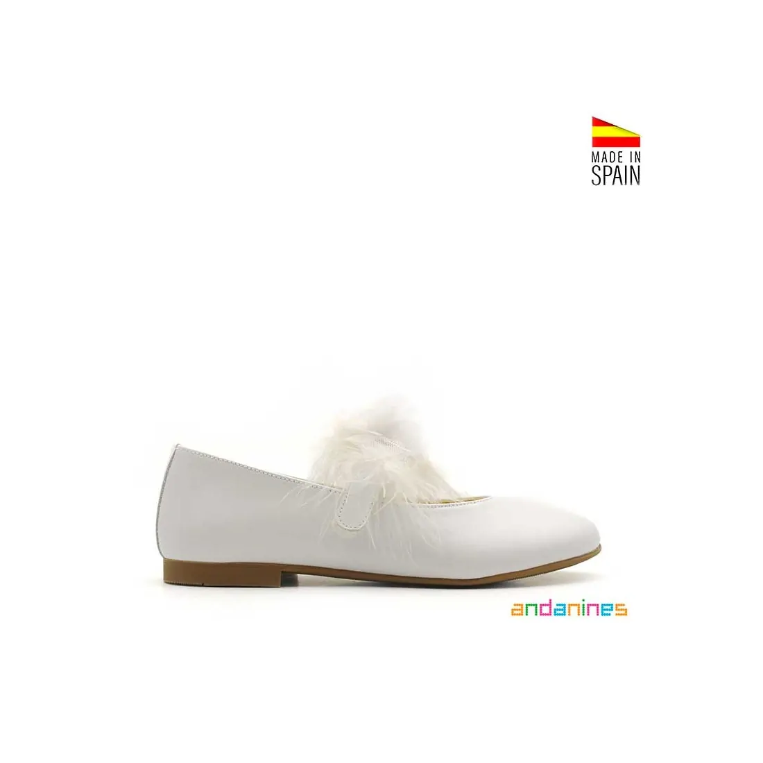 Un zapato de comunión fabricado en España, que refleja la experiencia de Andanines en calzado infantil bien hecho, pensado para acompañar uno de los días más importantes con estilo y confort.
