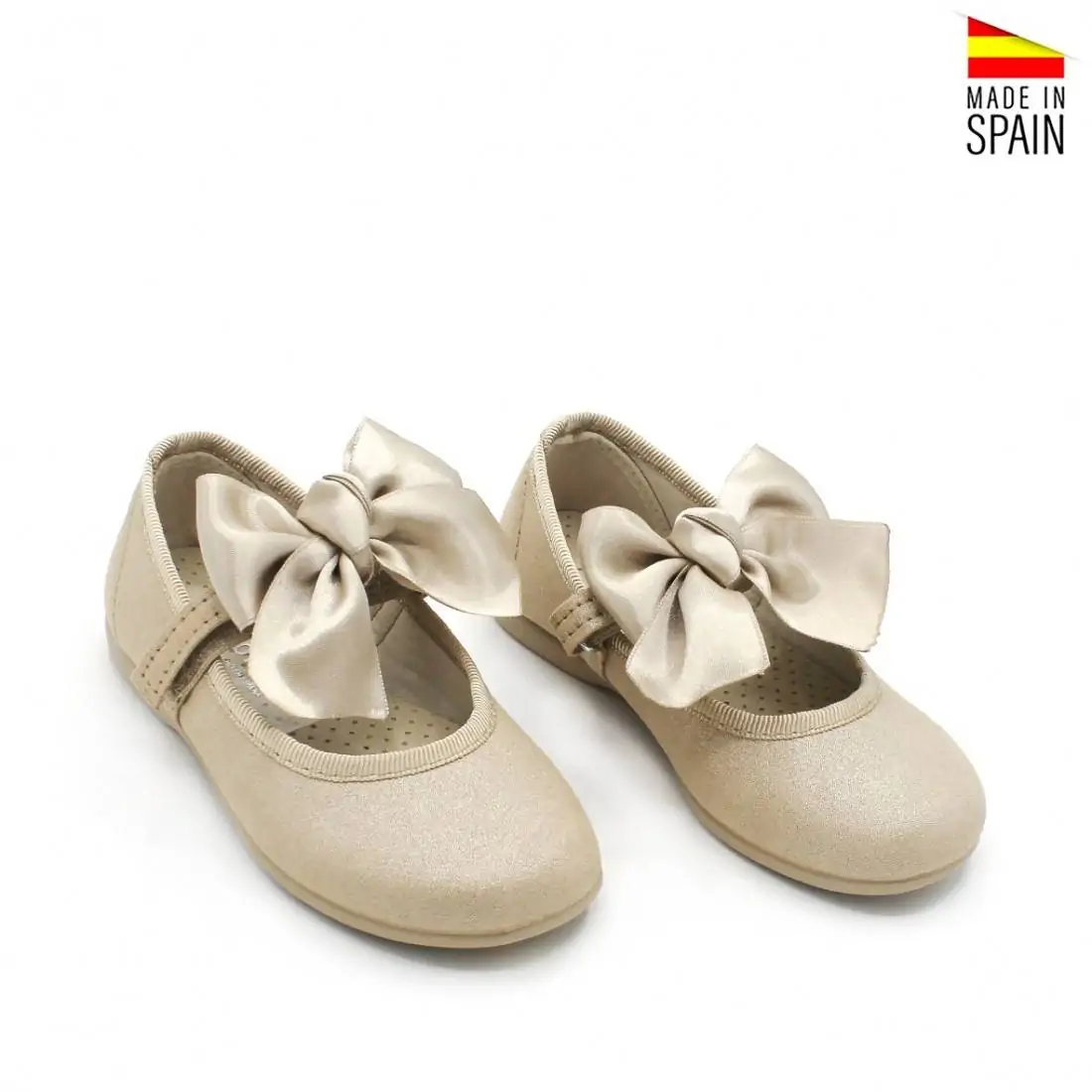 Su elegante color camel con delicados destellos dorados aporta luz y sofisticación, lo que los convierte en una opción ideal tanto para comuniones, ceremonias y eventos especiales como para acompañar looks más sencillos en el día a día.