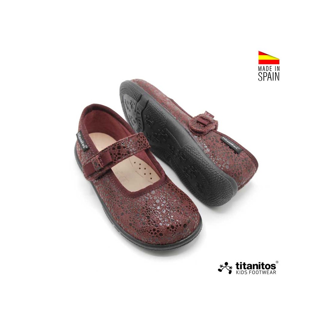 La mercedita titanitos en color burdeos es una opción elegante y cómoda para acompañar a las más pequeñas en su día a día.