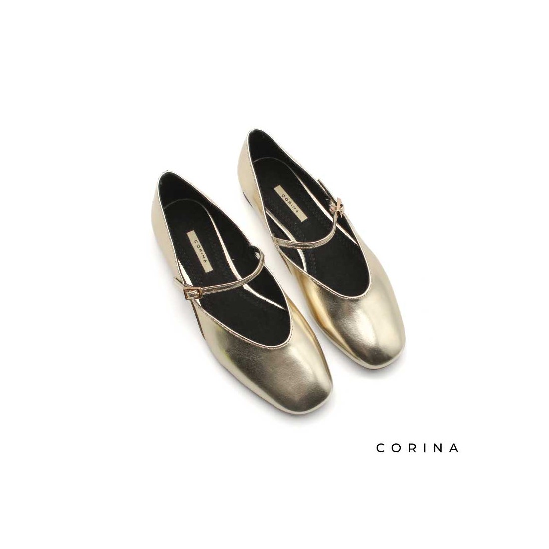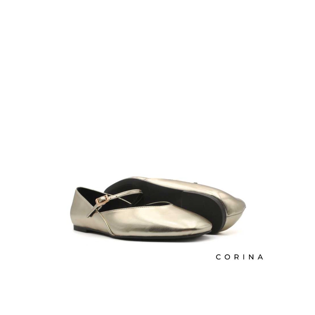 El Zapato Dorado Plano de Corina redefine la elegancia moderna con un guiño al estilo clásico de las merceditas.