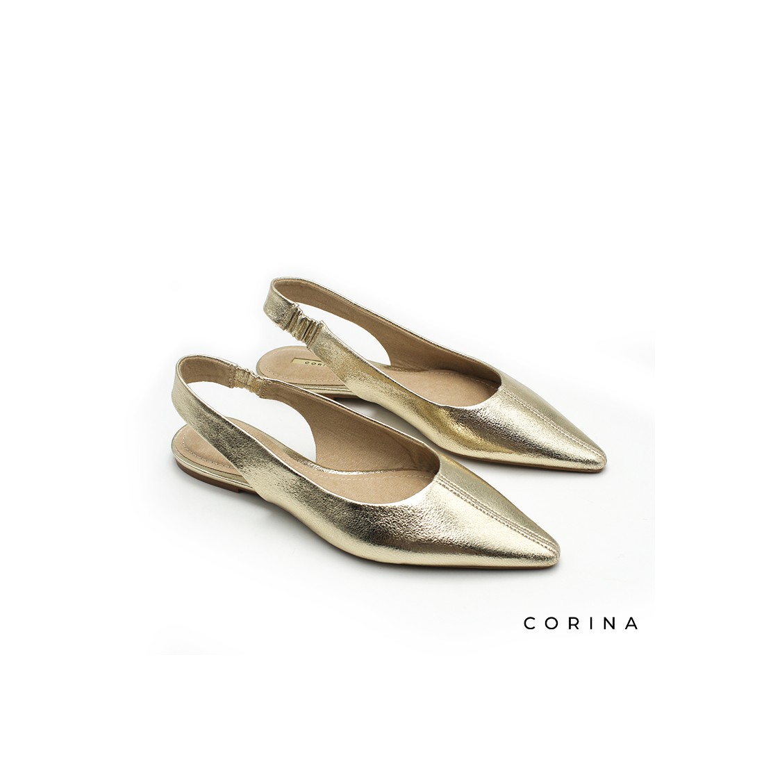 El zapato plano destalonado dorado es una pieza clave para las mujeres que buscan distinción y confort.